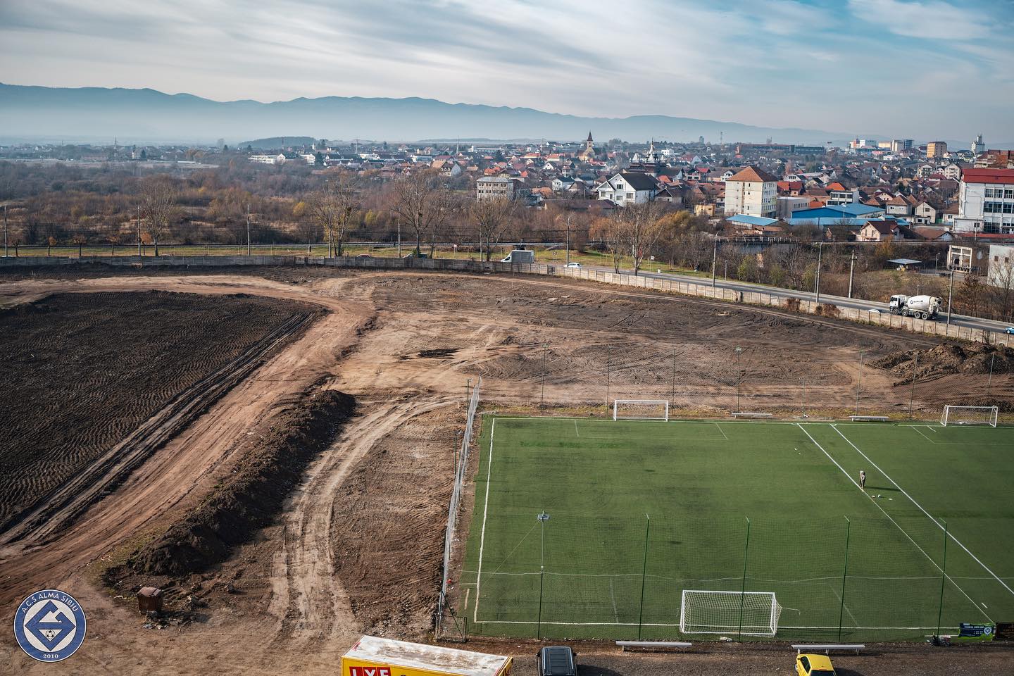 „În primă fază vom amenaja două terenuri sintetice, unul de mari dimensiuni, 106x67m, și încă unul de 75x55m. Și actualul teren cu iarbă naturală probabil că o să-l mutăm. Se va optimiza întreaga suprafață închiriată cu alei, parcări iar cele două terenuri se vor crea pe locul celui actual, de iarbă, al pistei de dirt-track, și al malului de pământ dinspre strada Maramureșului. Toate acestea vor dispărea pentru a face loc celor două terenuri omologate la cel mai înalt nivel” spunea la începutul lucrărilor Sergiu Haidău, cel care se ocupă de proiect din partea Alma Sibiu.