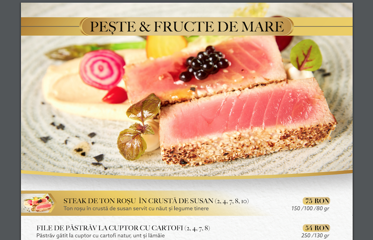 Captură din meniul restaurantului