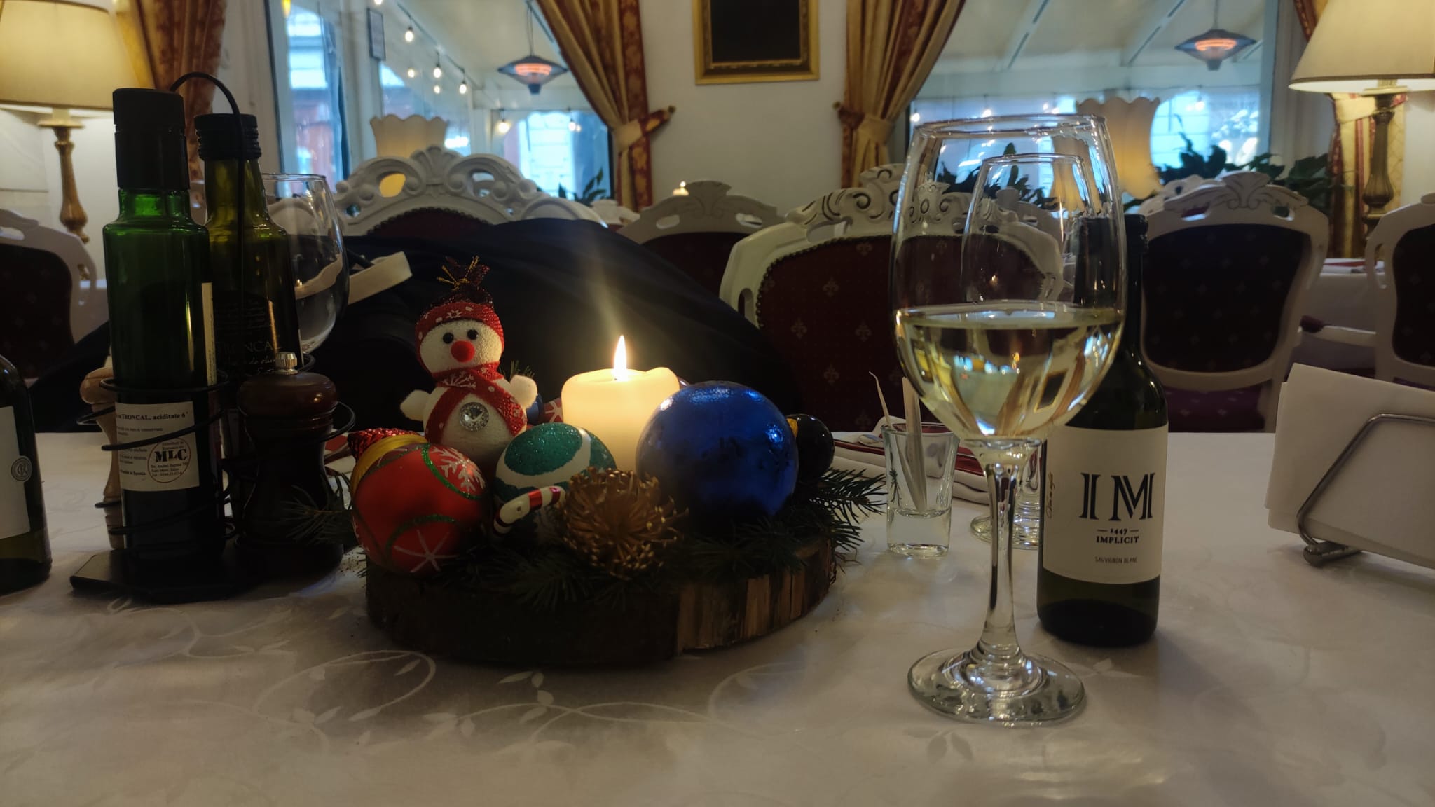 În altă ordine de idei, atmosfera din restaurant este una care mi-a plăcut mult: caldă, comodă și fără elemente exagerate de sărbătoare - doar câte o coroniță din brad și un omuleț de zăpadă pe mese, lângă o lumânare -, în contrast cu „inflația” de „merry christmas” de afară. Ba mai mult, într-o zi ploioasă, cu un pahar de vin sec în față și cu un jazz la volum mediu spre mic în boxe, urmărind figurile sumbre care trec prin fața geamului, e ceea ce pune la dispoziție locația. O pauză de la ceea ce oferă spațiile turistice ale Sibiului în această perioadă - comerțul și vanitatea. În care te cufunzi și tu după ce ieși de aici, pentru a gusta ca dintr-un steak de ton fără gust...