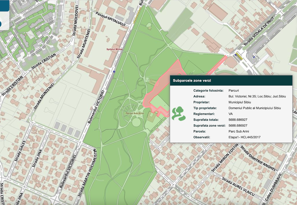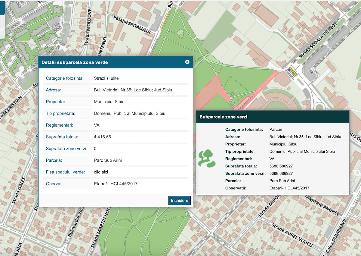 Precizăm că, în prezent, o parte din date, și anume arborii cartografiați deja, sunt disponibile publicului pe site-ul Primăriei, sibiu.ro, la secțiunea Hărți Interactive - Harta Registrul Spațiilor Verzi.