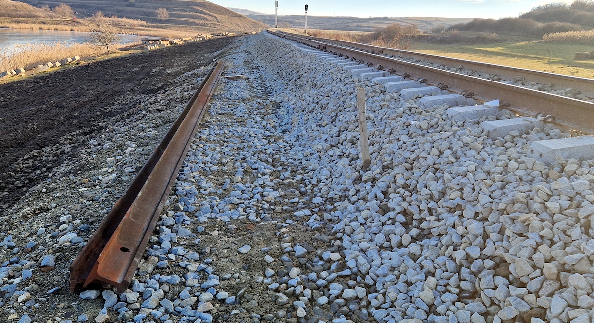 Două șine noi mai pot fi văzute la marginea terasamentului, în zona lacurilor de la Mândra. Sursa foto: Turnul Sfatului
