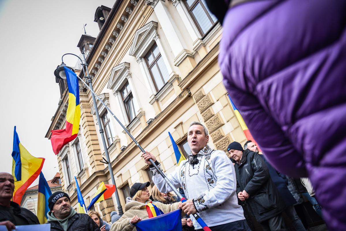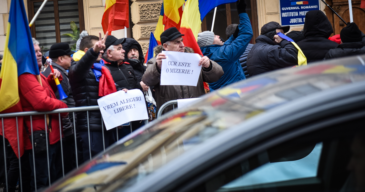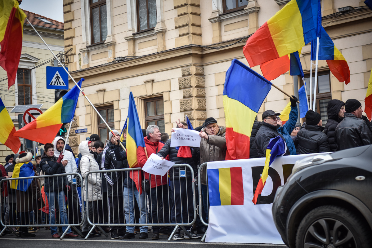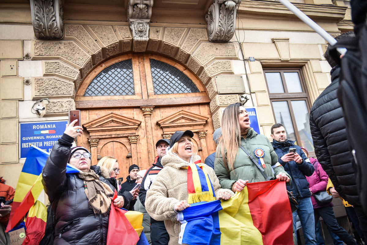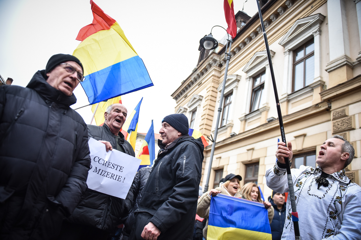 „Nu cedăm, nu renunțăm și nu trădăm. Protestăm pentru alegeri libere, împotriva măsurilor de austeritate și cerem demisia președintelui ilegitim Iohannis!” - sub acest slogan câteva sute de sibieni s-au strâns sâmbătă în fața Prefecturii din Sibiu.