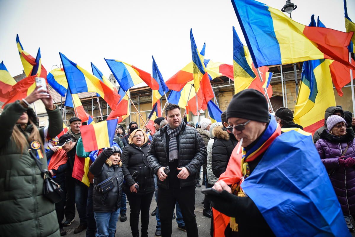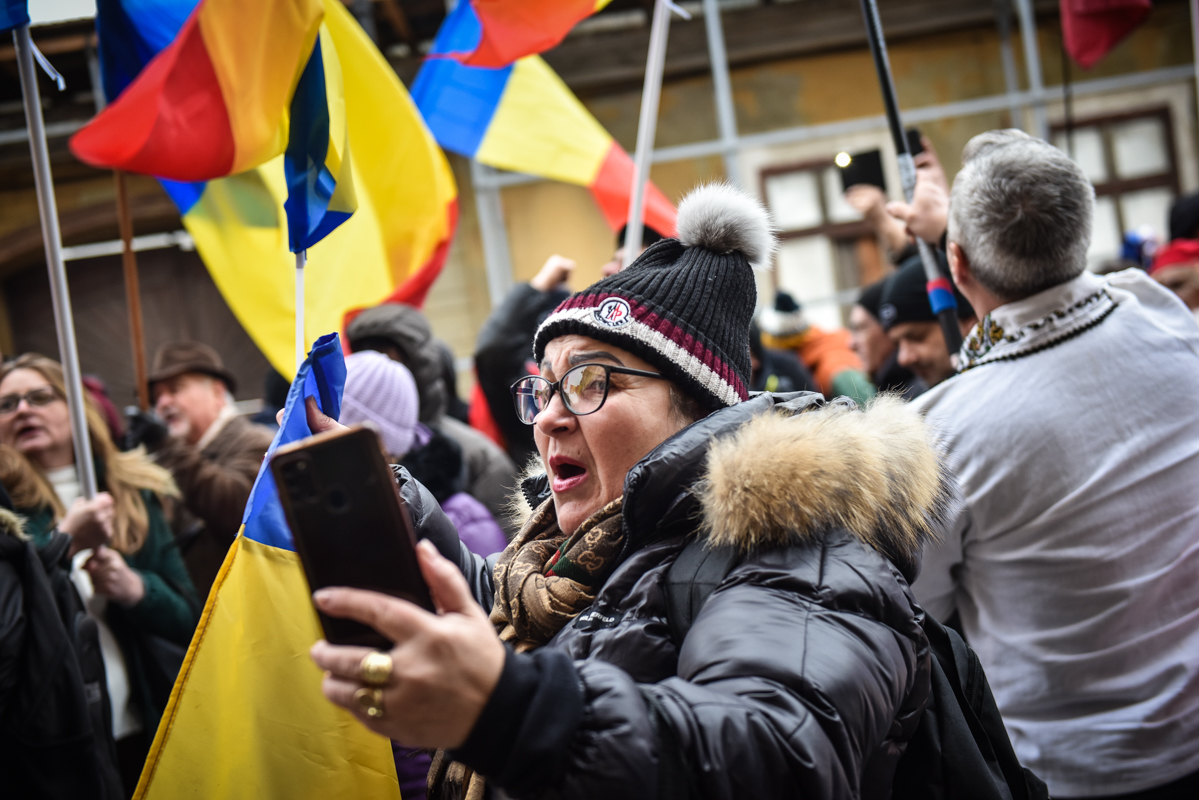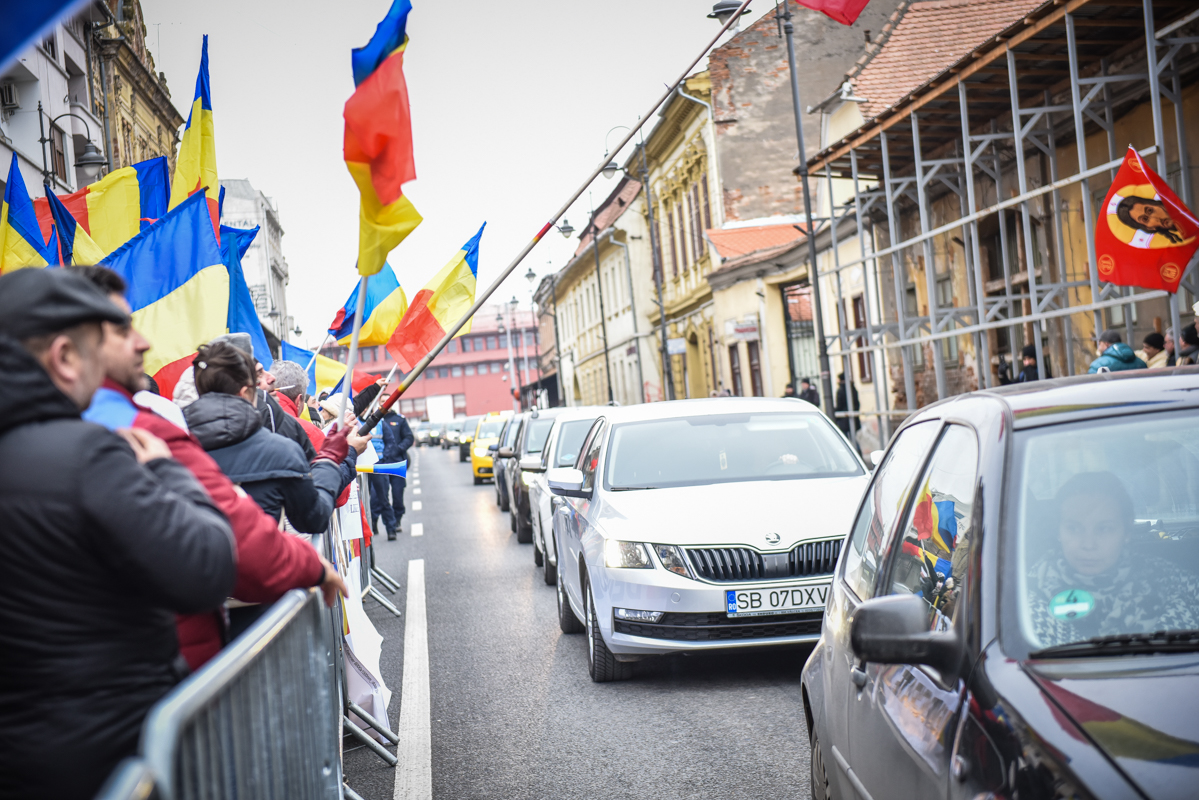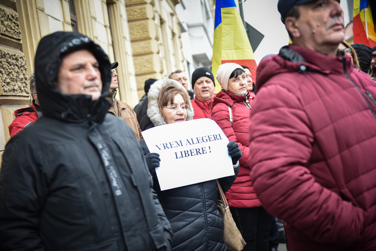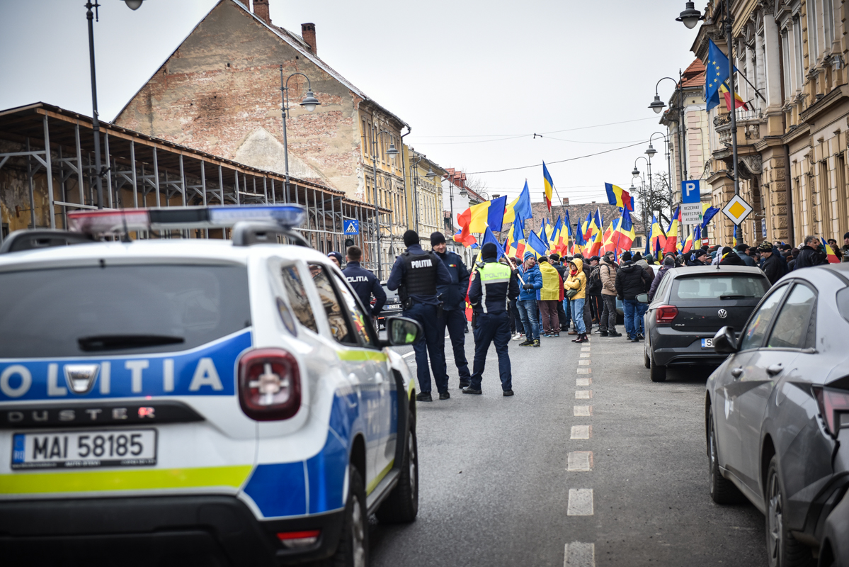 „Nu cedăm, nu renunțăm și nu trădăm. Protestăm pentru alegeri libere, împotriva măsurilor de austeritate și cerem demisia președintelui ilegitim Iohannis!” - sub acest slogan câteva sute de sibieni s-au strâns sâmbătă în fața Prefecturii din Sibiu.