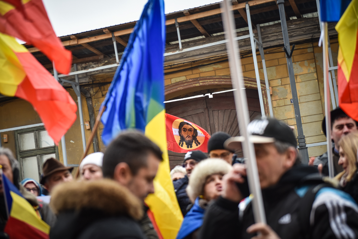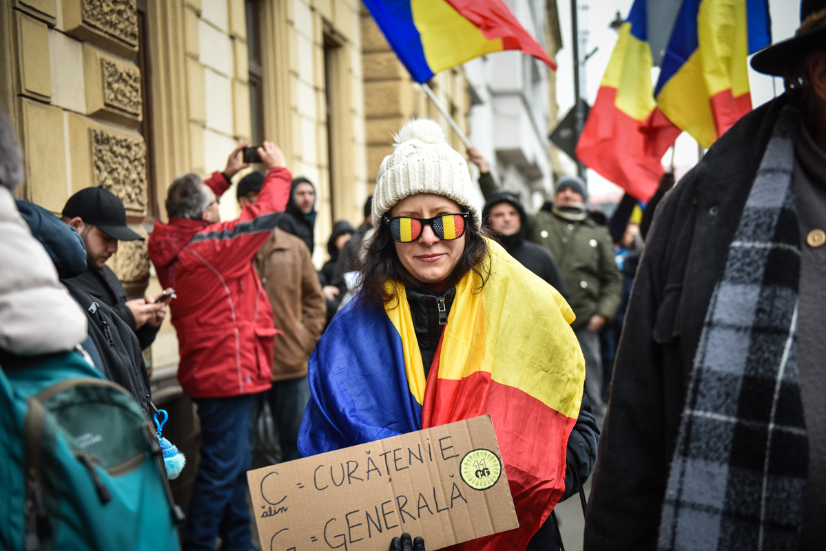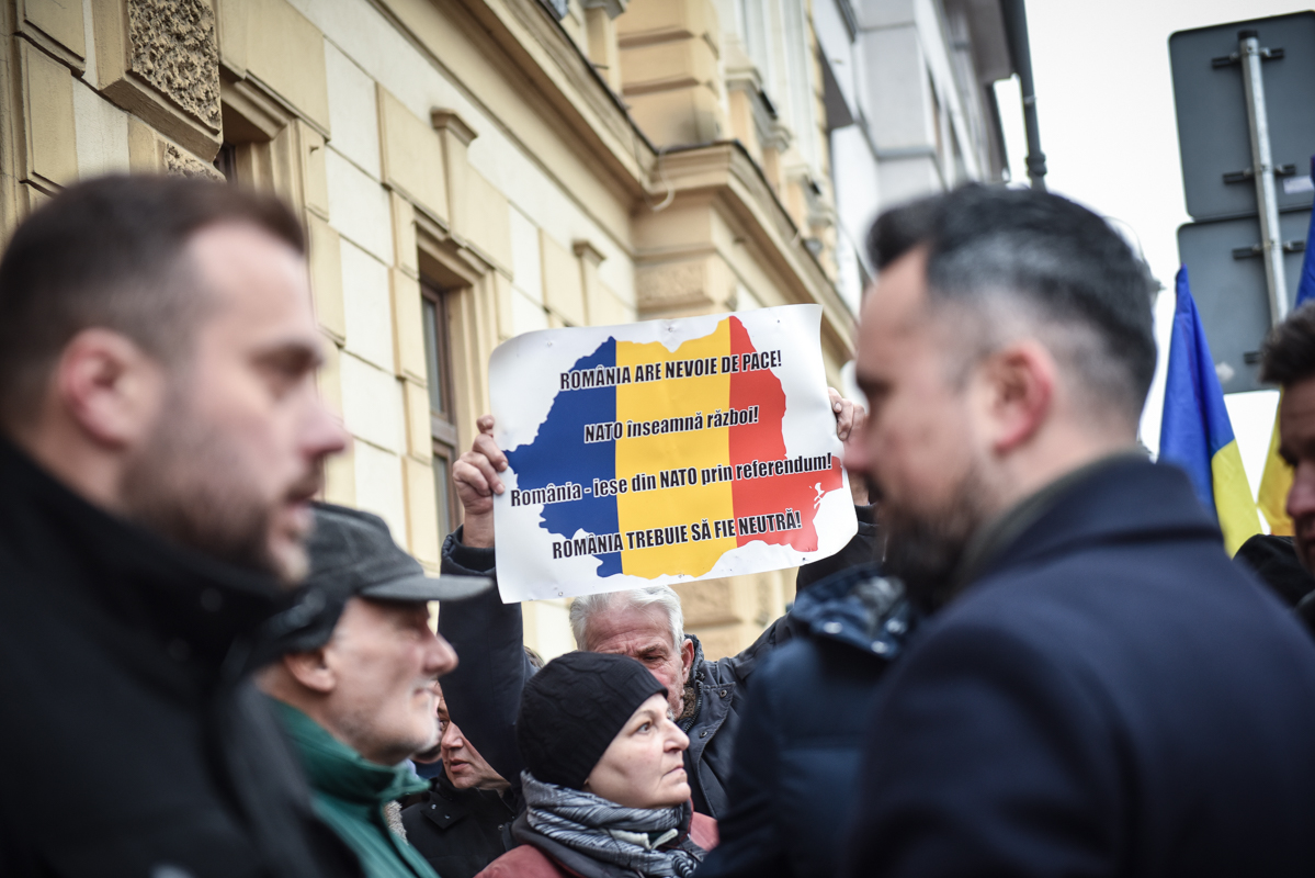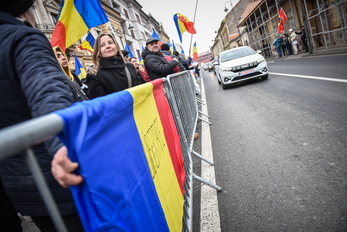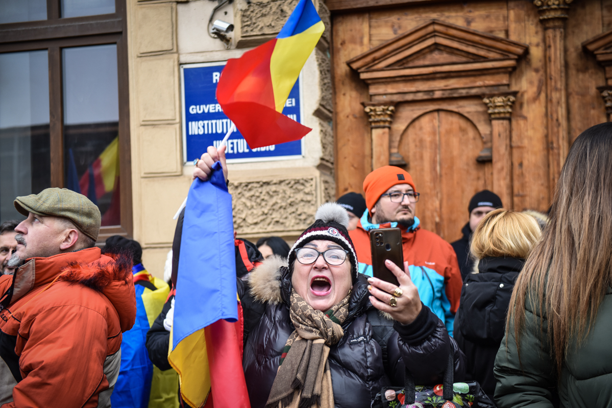 „Nu cedăm, nu renunțăm și nu trădăm. Protestăm pentru alegeri libere, împotriva măsurilor de austeritate și cerem demisia președintelui ilegitim Iohannis!” - sub acest slogan câteva sute de sibieni s-au strâns sâmbătă în fața Prefecturii din Sibiu.