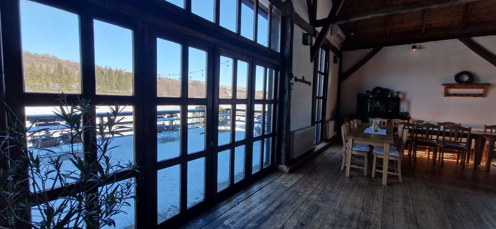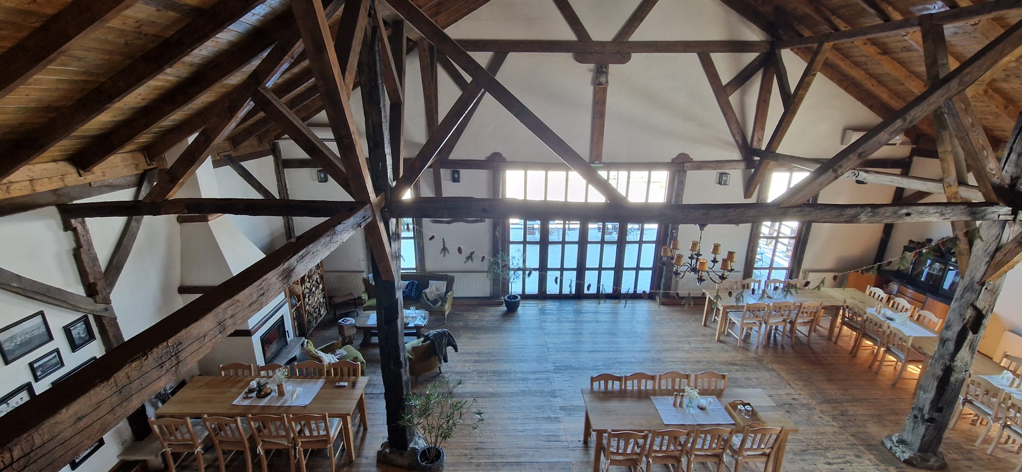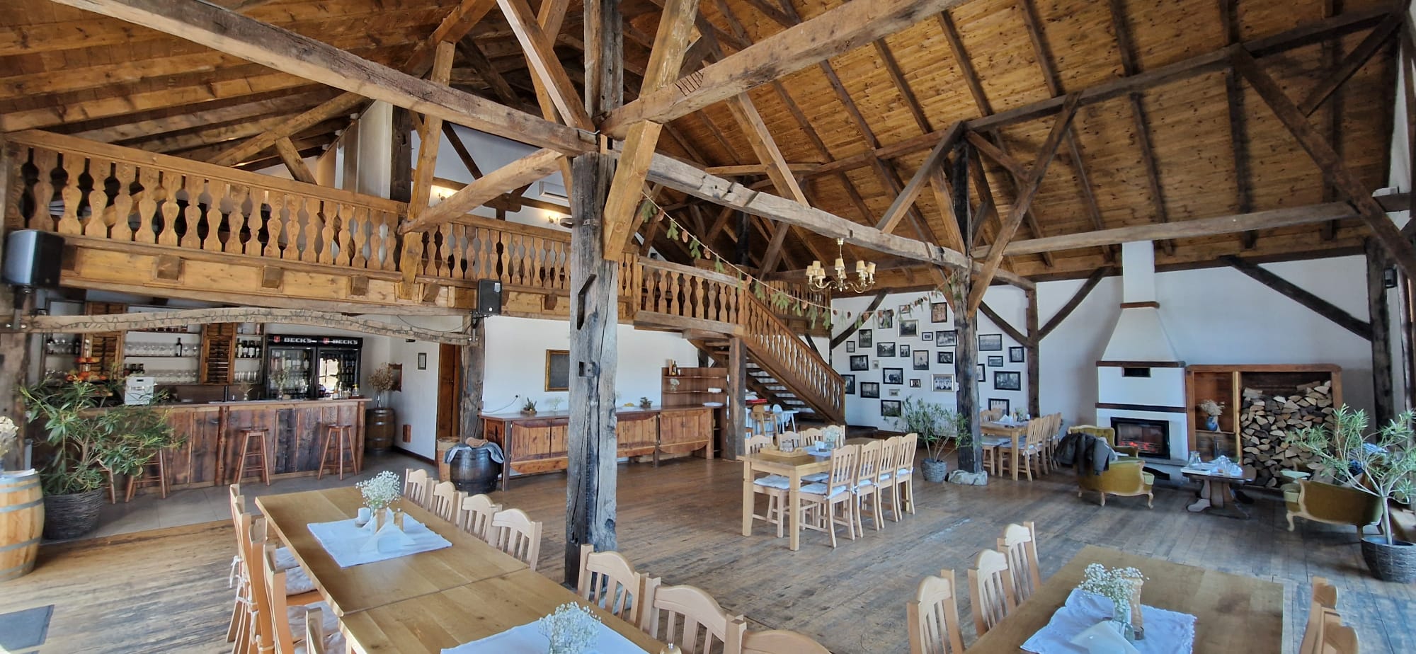 Toți turiștii care ajung aici sunt așteptați la masă, cu mâncăruri tradiționale, în restuarantul amenajat în fosta șură. Acesta impresionează prin spațiul extrem de generos, căldura dată de lemnul atent întreținut și luminozitataea ferestrelor foarte mari. Cine este norocos poate găsi o masă în apropierea șemineului. Mâncarea este întotdeauna proaspătă, făcută în sat, cu ingrediente locale.