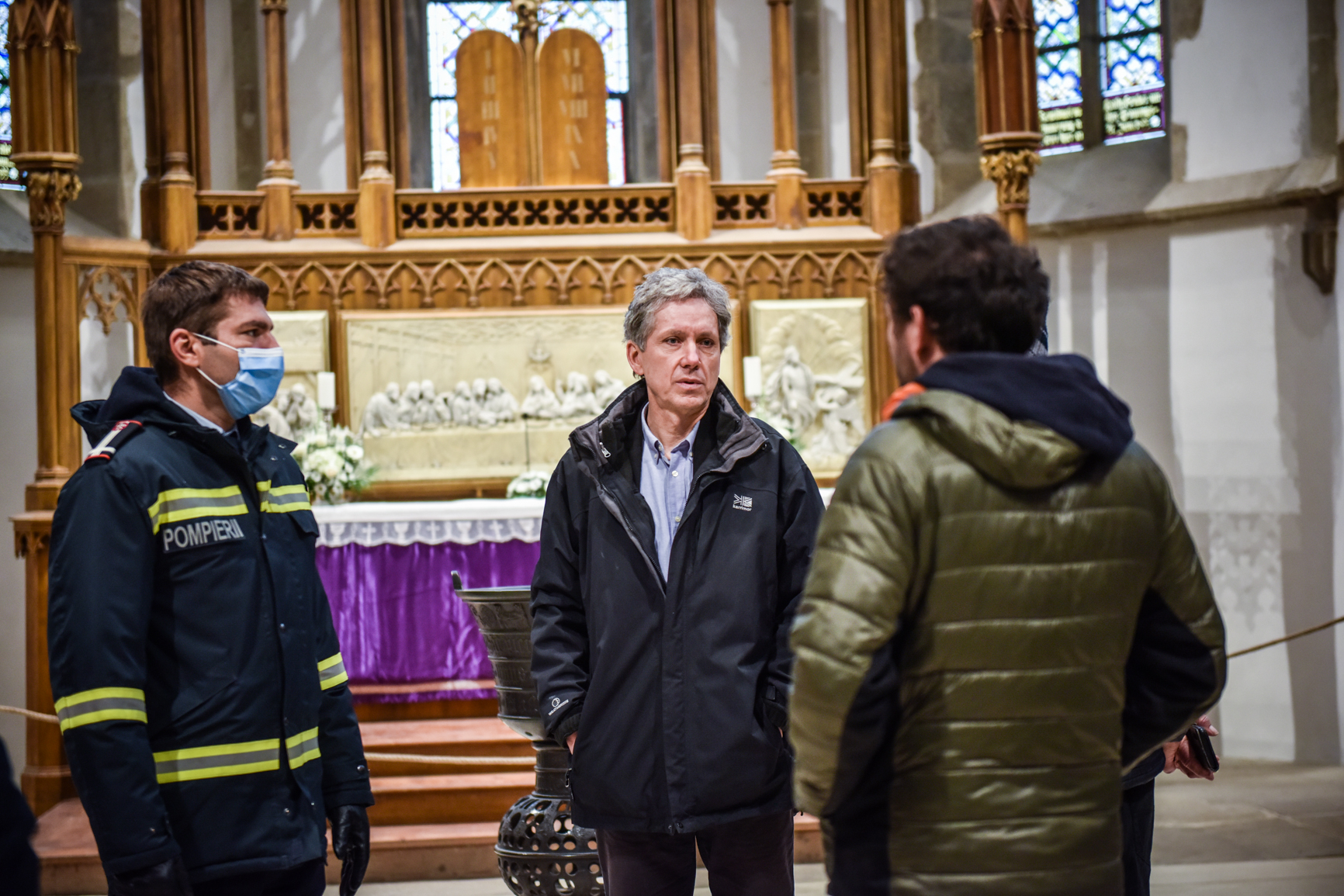 Al doilea aspect a fost acela că am vrut să lăsăm ceva pentru cercetarea arheologică a anilor sau secolelor care o să vină, când oamenii o să aibă probabil metode mai elaborate decât le avem acum, mai non-distructive de a cerceta. Este singurul mormânt care a rămas intact în biserică. Toate celelalte au fost golite și transmutate în cimitirul bisericesc de atunci, care e acum sub spitalul municipal. De aceea am zis că a mai rămas unul singur și este evident că este a baronului Brukenthal: arheologii ne-au explicat că el se află un pic mai sus decât celelalte; baronul Brukenthal a fost ultimul înmormântat acolo și înălțimea pardoselii corespunde cu acest mormânt din acest timp. Deci, arheologii au spus 100% că este foarte clar acest lucru, dar și după acte în tot este așa. Poate generațiile viitoare vor avea mai bune posibilități și dorim să le lăsăm ceva.