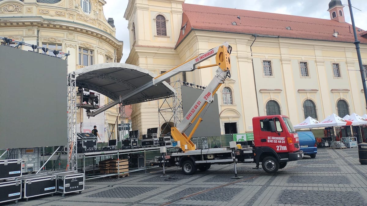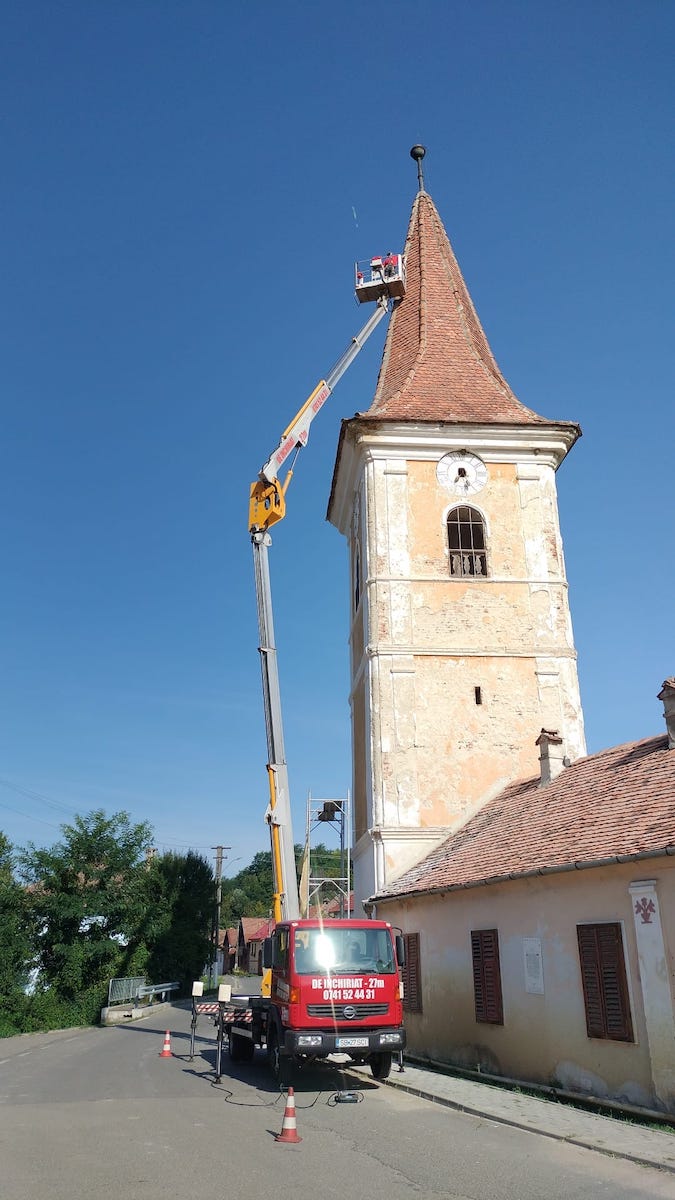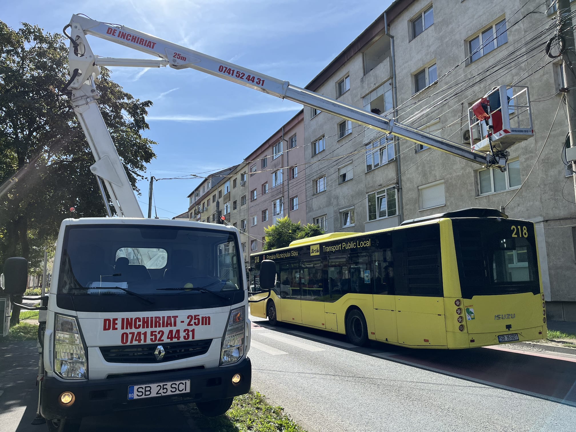 Călin poate fi contactat la numărul de telefon 0741 524 431, dar și pe pagina de facebook Închiriez Nacela, PRB, Platforma de lucru la înălțime.