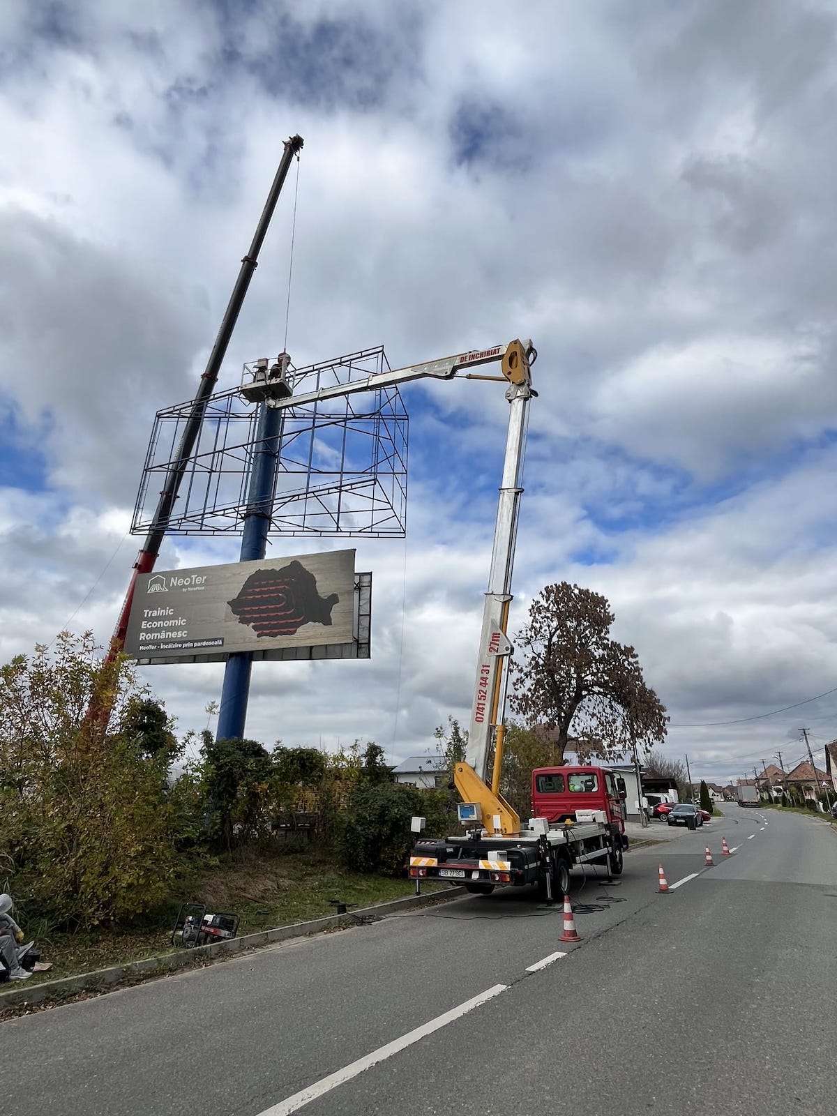 „Prima lucrare cu utilajul a fost la o firmă de inscripționat și m-au întrebat dacă nu vreau să-mi inscripționez utilajul, să apară numele firmei scris pe el. L-am inscripționat și au început să sune oamenii. Utilajul se închiriază cu deservenți sau manipulatori de jos, omul urcă în coș îl asigurăm cu centură, cu cască de protecție, își ia sculele, iar noi îl ridicăm.