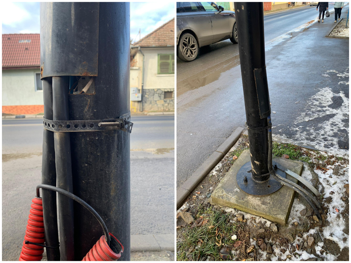 Lucrări neconforme la rețeaua de iluminat public. Sursa imaginilor: Primăria Cisnădie