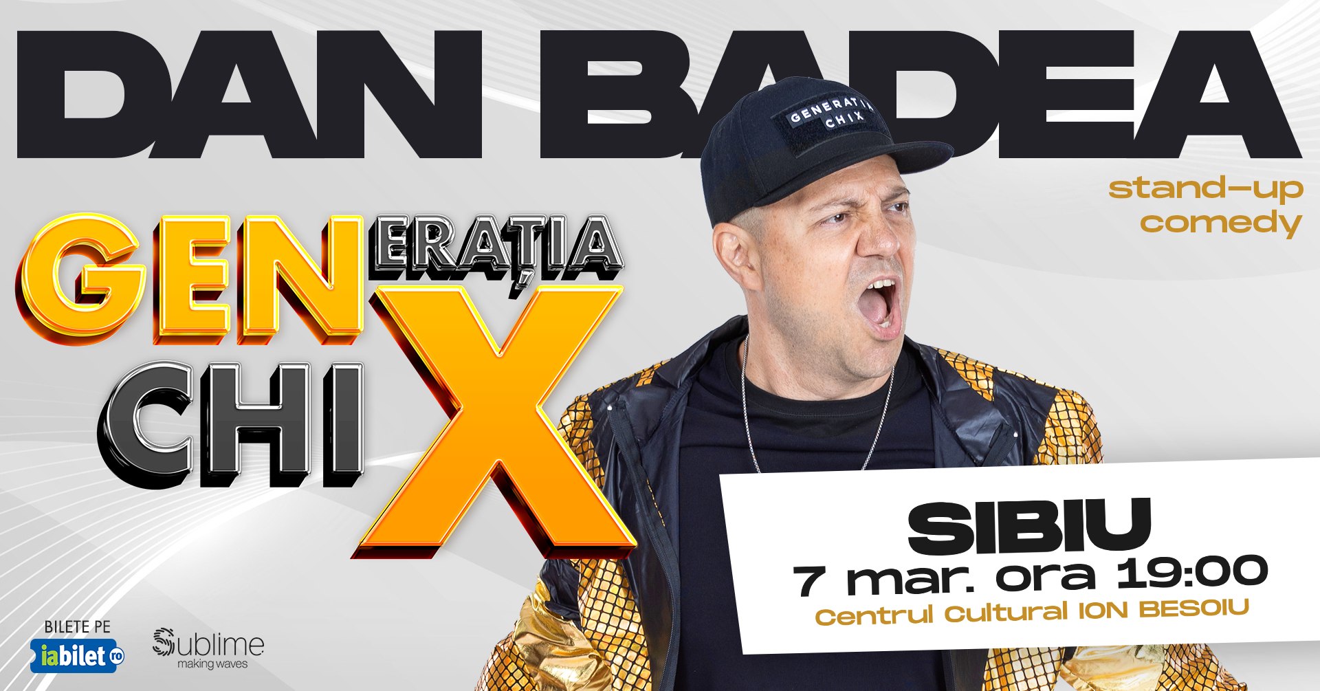 Dan Badea ajunge la Sibiu cu stand-up-ul „Generatia ChiX”, în 7 martie, la Centrul Cultural Ion Besoiu. Bilete pot fi cumpărate aici.