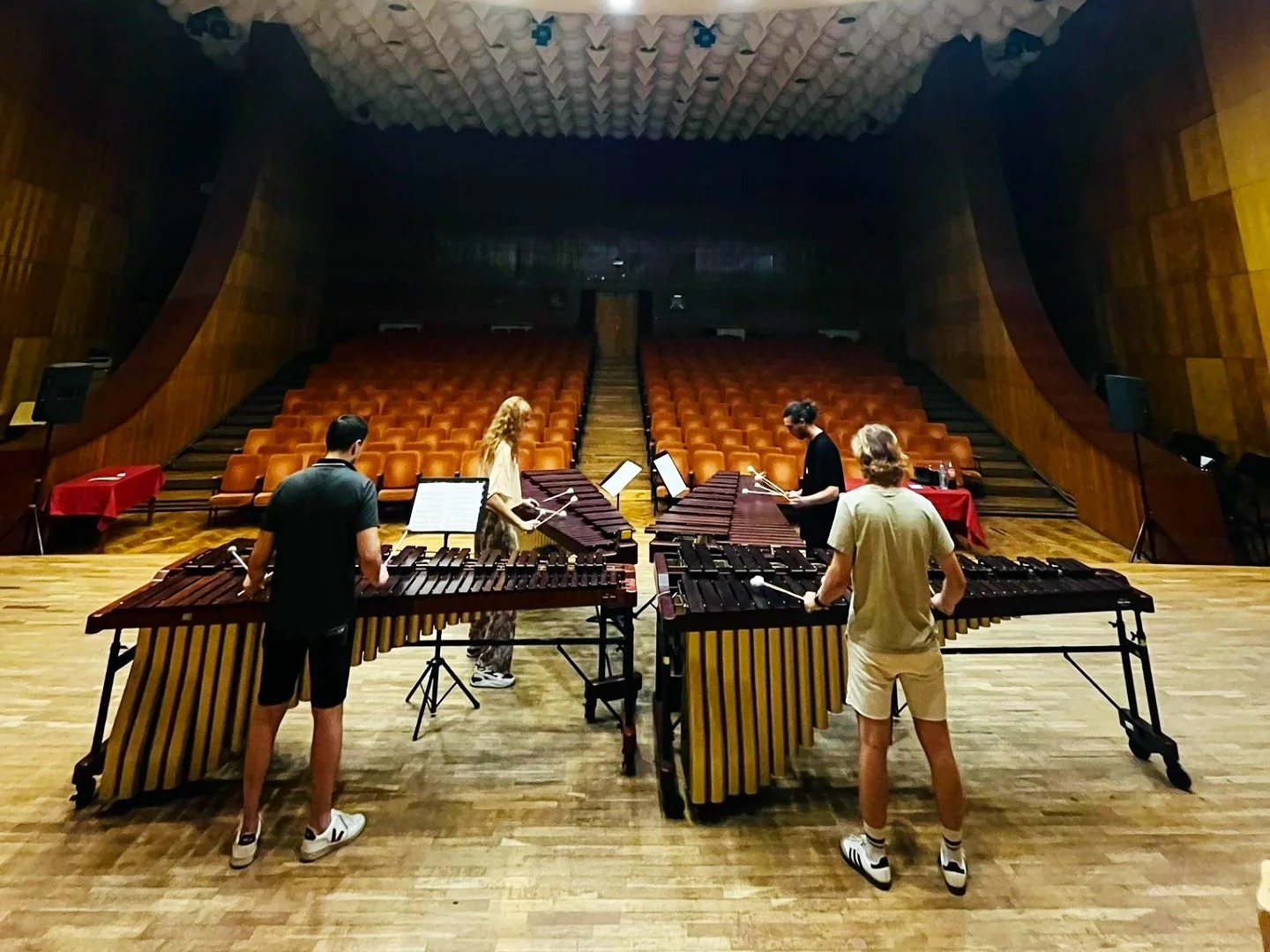 Ansamblul de percuție Wooden Echoes, proaspăt lansat în peisajul muzical din România, este un proiect unic, ce explorează percuția temperată, marimba și vibrafonul, cu lucrări care îmbină influențe latino și jazz.
