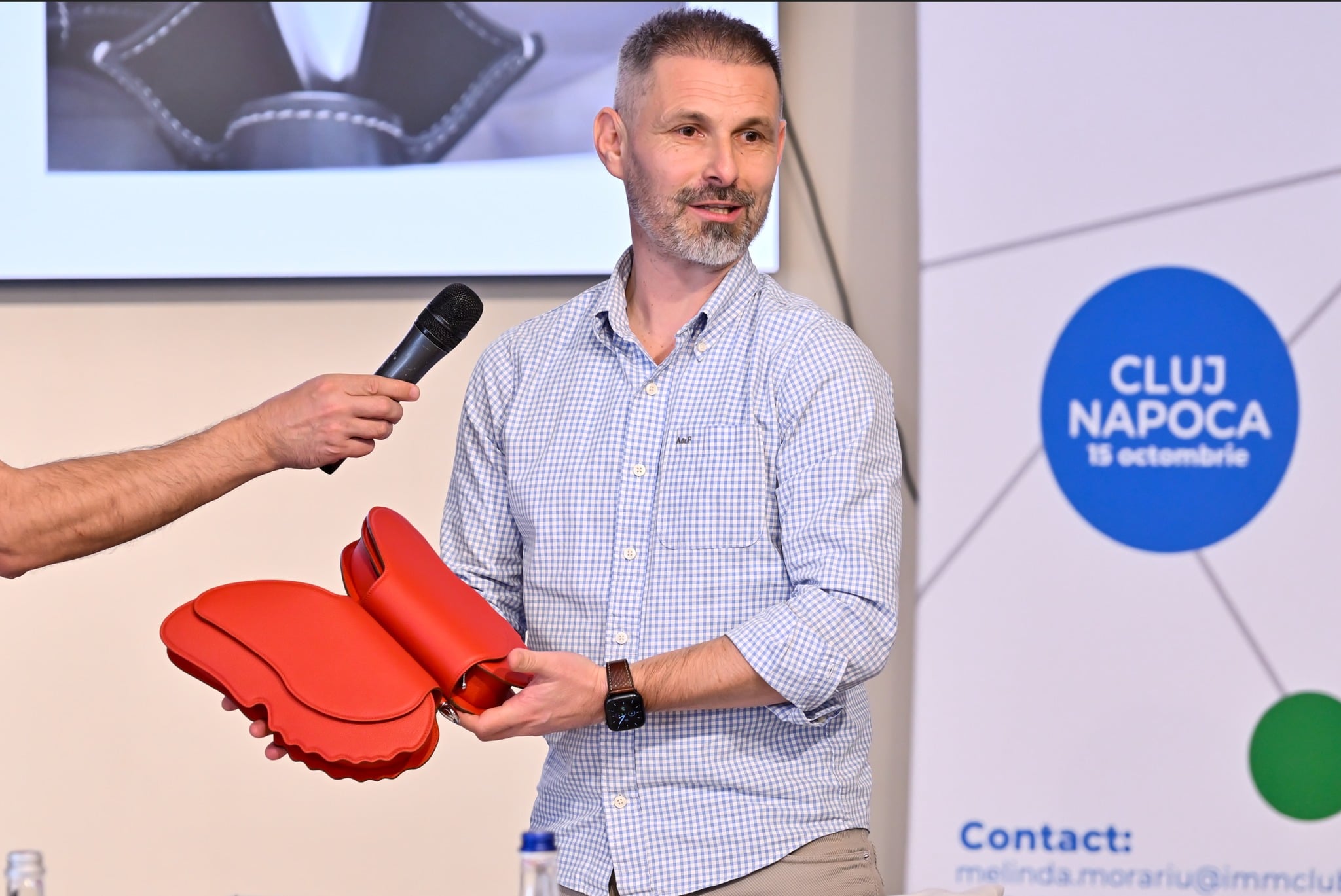 Lucian Sopa a povestit apoi despre parcursul său remarcabil, începând de la atelierul părinților săi din Sibiu, până la colaborările cu branduri de renume precum Prada și Furla. „Obsesia mea este ca produsele mele să poarte mândru eticheta Made in Romania, nu „Made in Italy”, a subliniat Sopa.