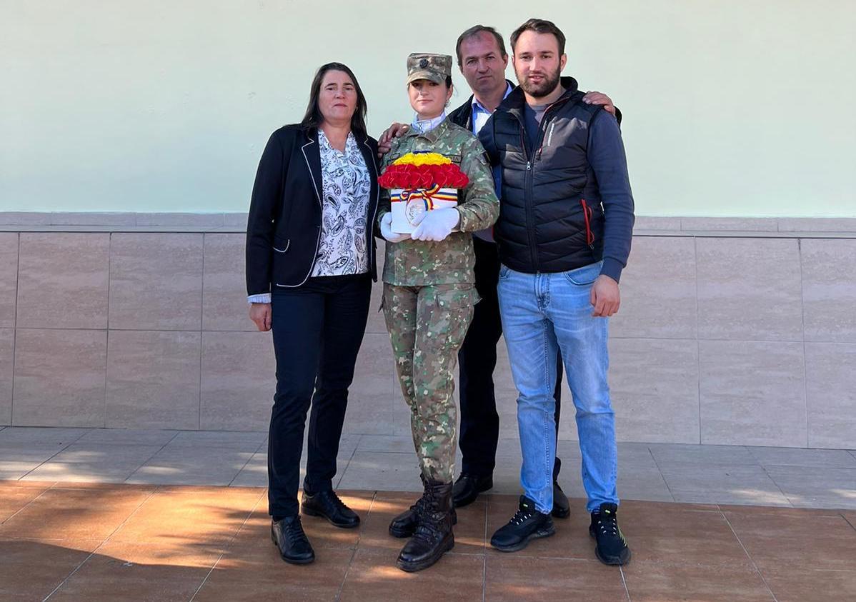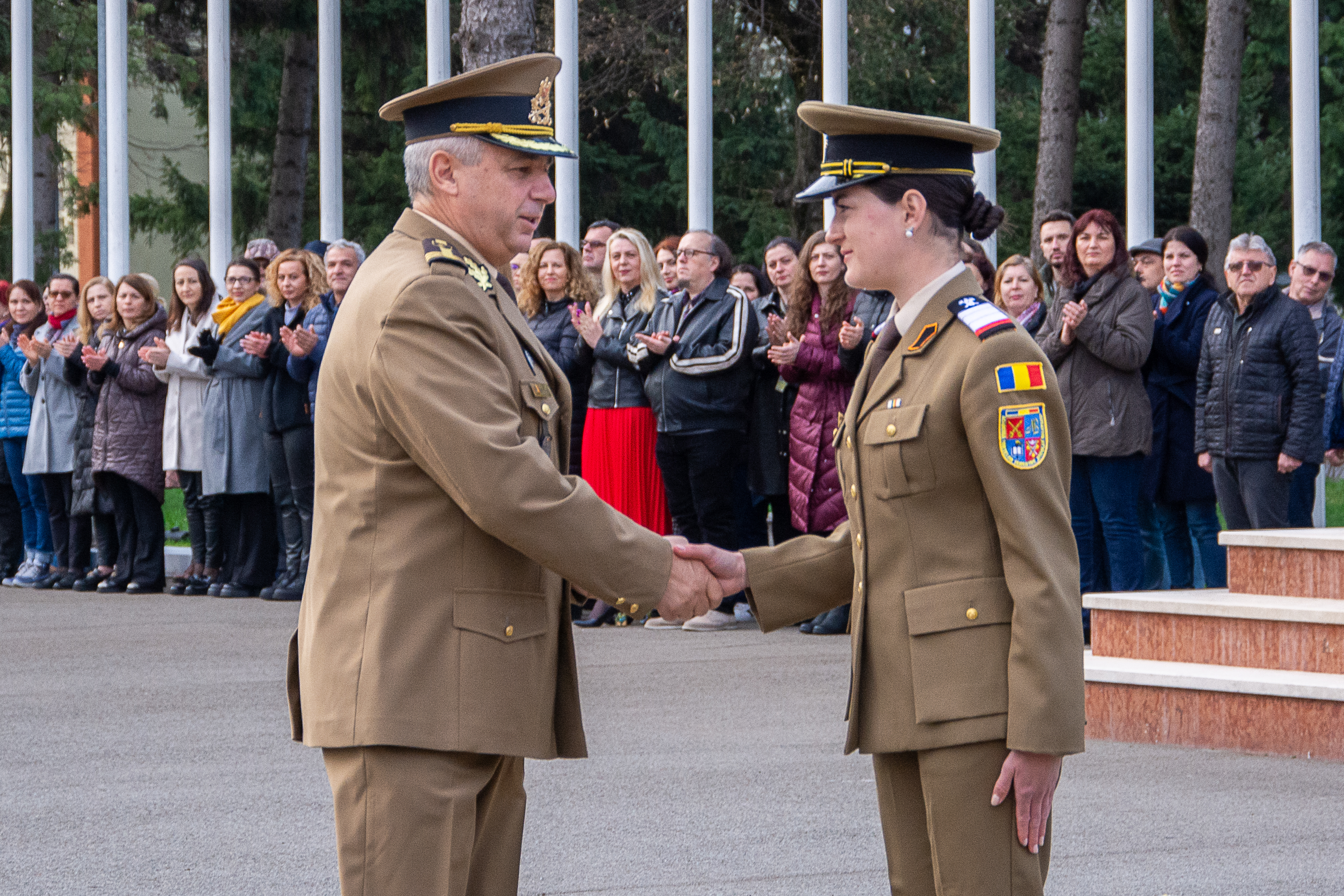 Alexandra felicitată de col. Grigoraș Constantin în cadrul ceremonialului prin care a fost felicitată pentru rezultate