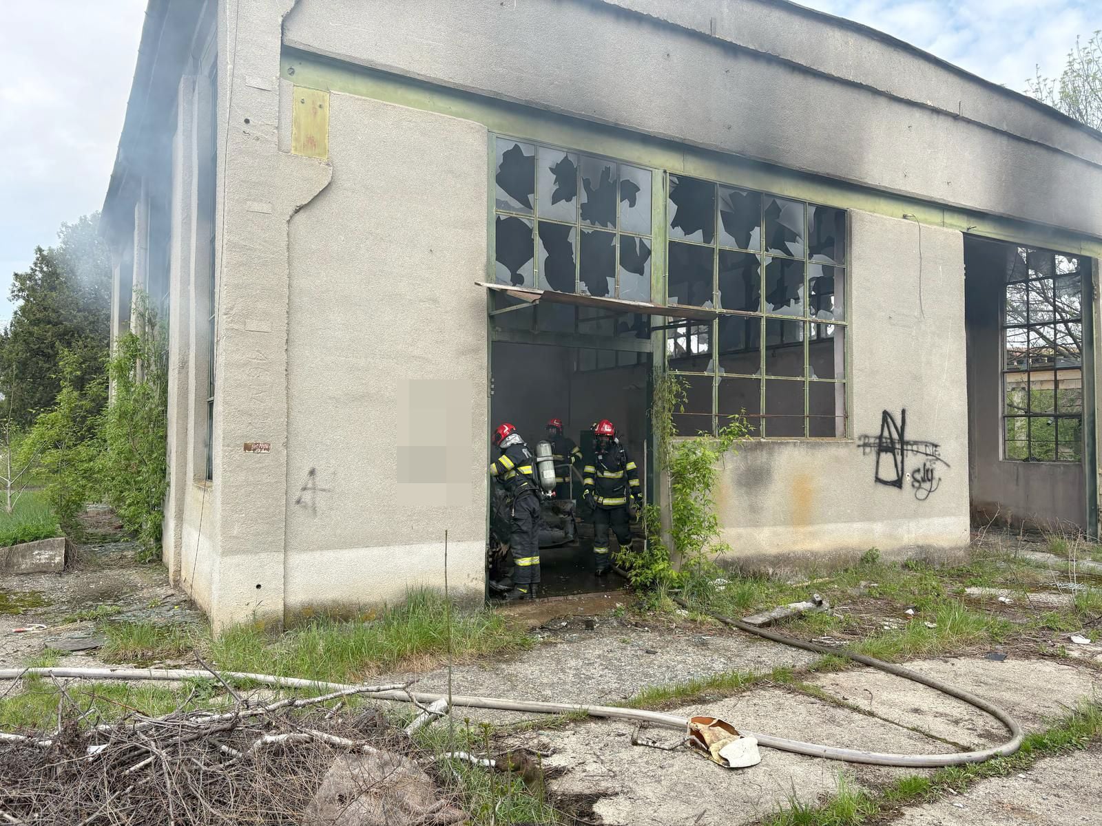 La sosirea forțelor incendiul se manifesta cu degajări de fum. În interiorul uneia dintre hale a ars, în totalitate, un autoturism vechi, iar în cea de-a doua, au ars resturi menajere.
