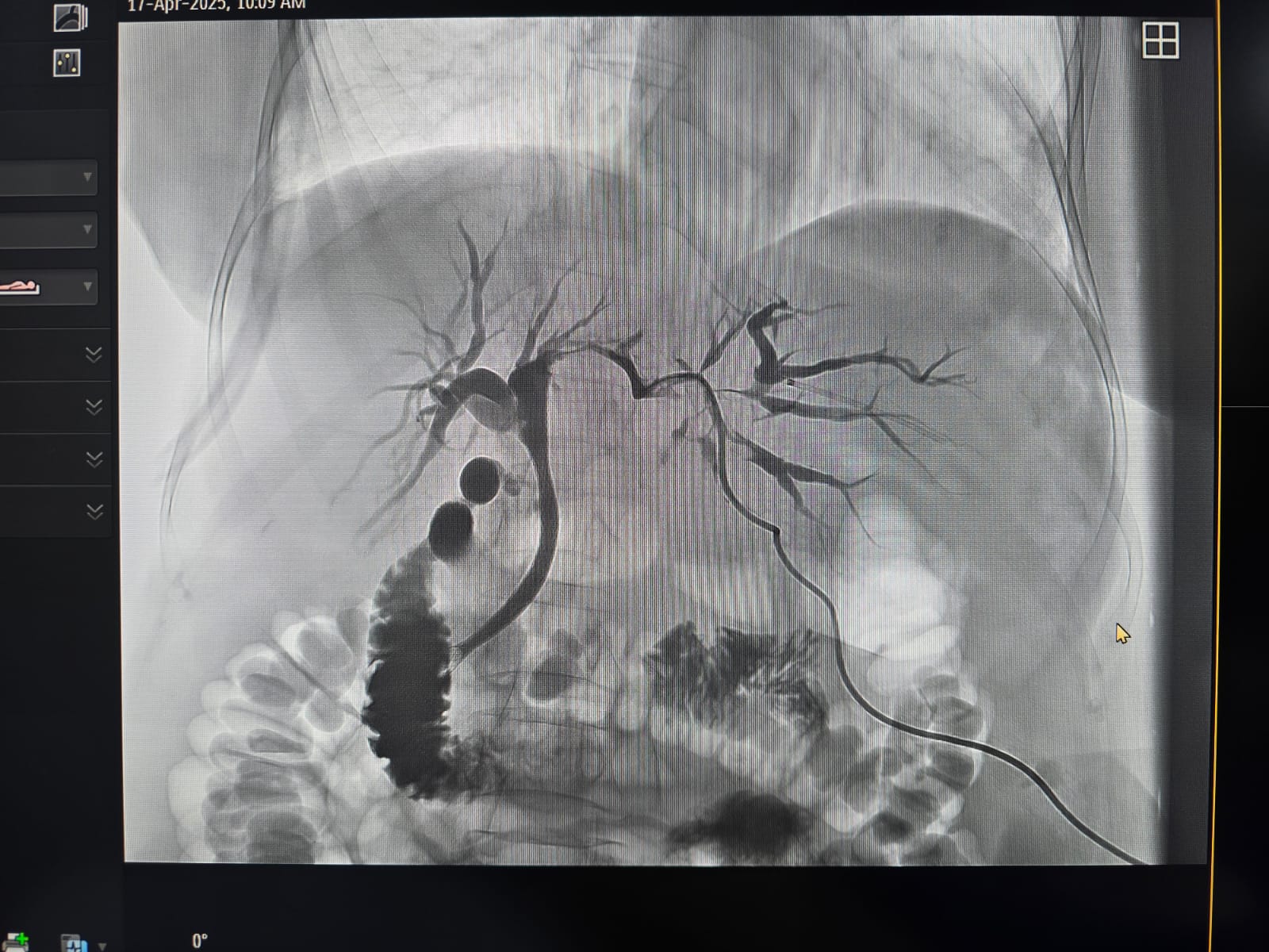 În prima etapă, echipa de Radiologie Intervențională a realizat cu succes un drenaj biliar percutan transhepatic. Ulterior, în a doua etapă, în colaborare cu echipa de Gastroenterologie, s-a efectuat montarea unui stent pe căile biliare extrahepatice, printr-o procedură hibridă, ghidată atât angiografic, cât și endoscopic.