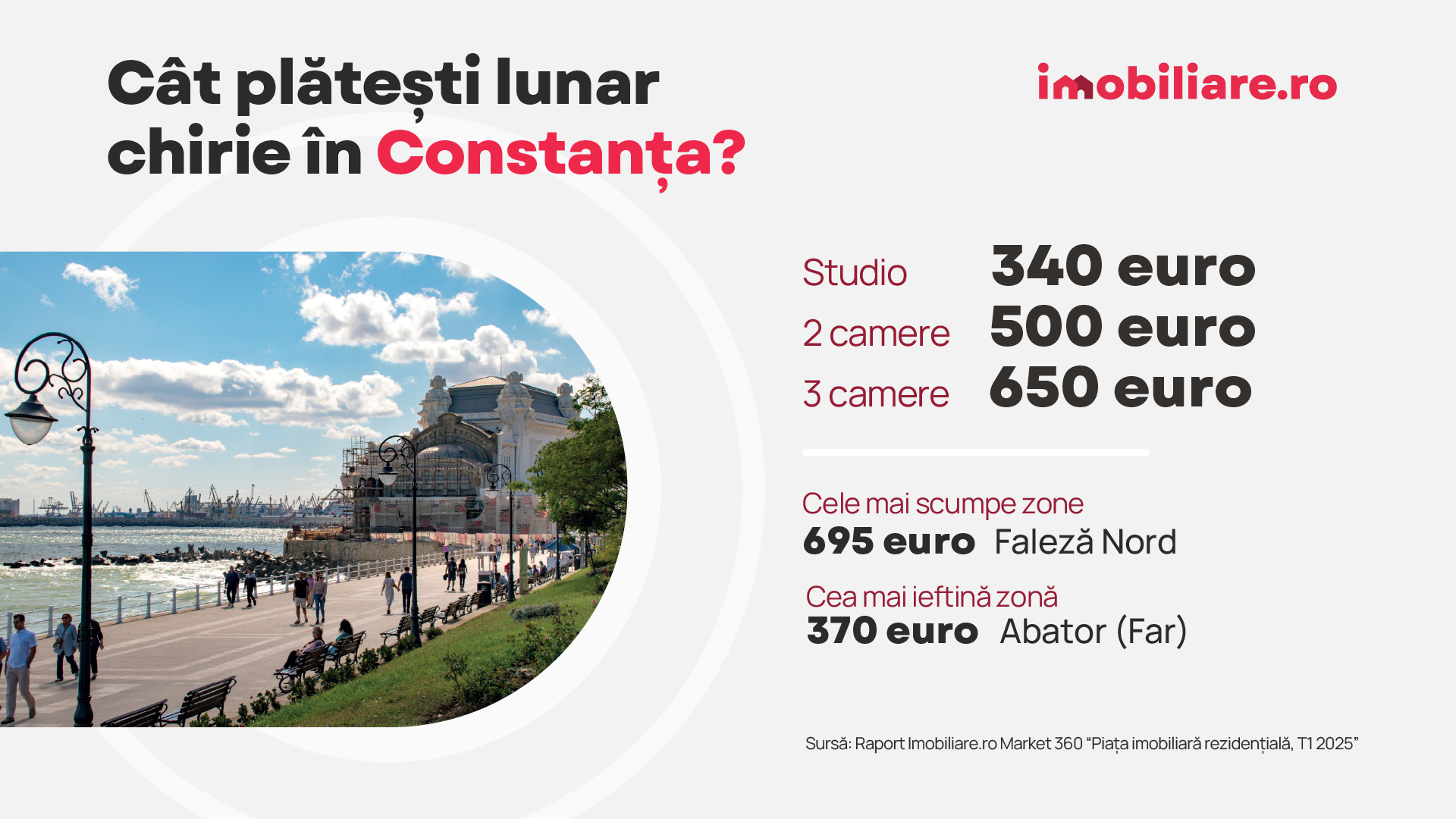 Cea mai scumpă zonă din oraș este, la începutul acestui an, Faleza Nord, unde apartamentele se închiriază cu o sumă medie lunară de 695 euro. Chiriile s-au ieftinit ușor în centrul orașului, mai exact de la 700 la 650 euro/lună. Ieftiniri au putut fi observate și în zona în care chiriașii achită deja lunar cele mai mici sume de bani proprietarilor, Abator (Far). Un apartament poate fi închiriat cu 370 euro/lună.