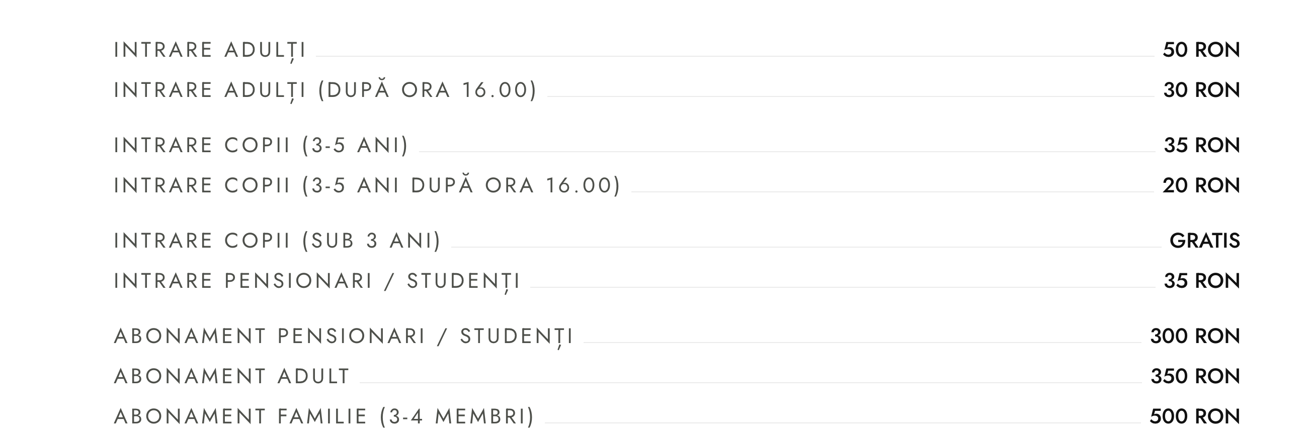 De luni până vineri, între orele 9-19, un bilet întreg pentru adulți costă 50 de lei, iar 30 de lei este un bilet pentru elevi, studenți și pensionari;