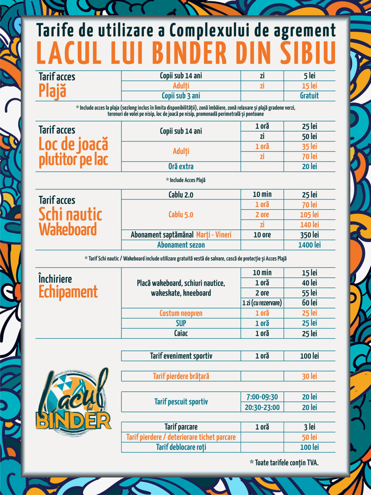 Lacul lui Binder s-a deschis deja de la 1 mai, iar programul normal al complexului este de marți până duminică, între orele 10 - 20, iar pentru plimbări se poate intra până la ora 23.