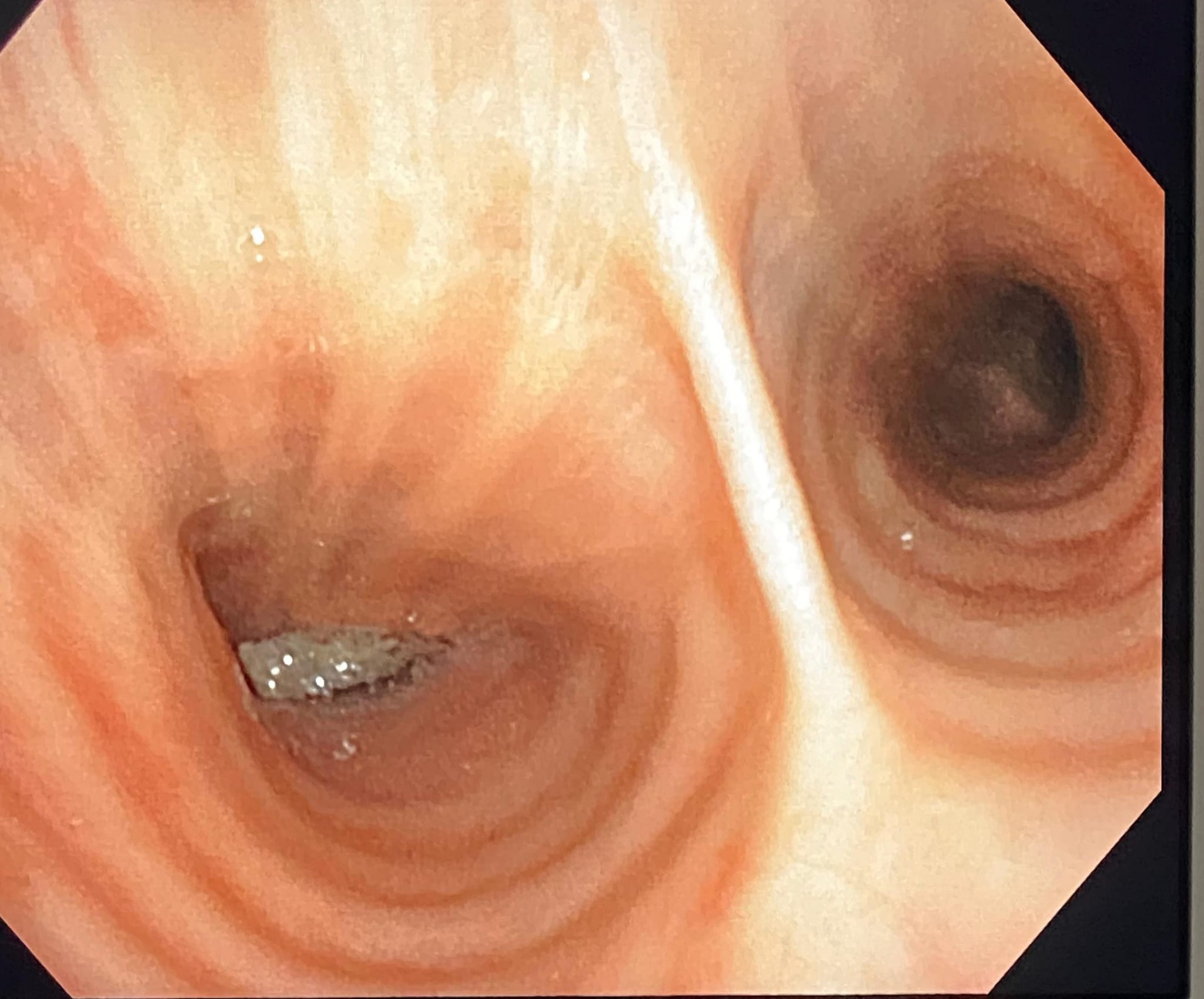 Potrivit medicului, pacientul inhalase osul în urmă cu aproximativ patru luni, în luna februarie, fără să realizeze acest lucru. În acest interval, bărbatul a prezentat tuse persistentă și infecții respiratorii recurente, motiv pentru care a fost efectuat un examen de tomografie computerizată (CT), ce a indicat prezența corpului străin.