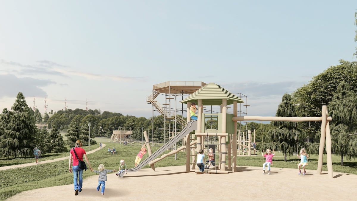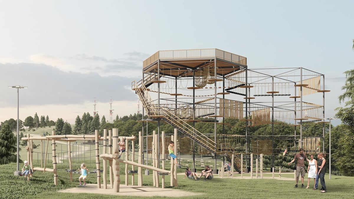 - Terasă panoramică cu plase de relaxare în zona Turnului Falkenhayn pe o suprafață de aproximativ 1000 mp