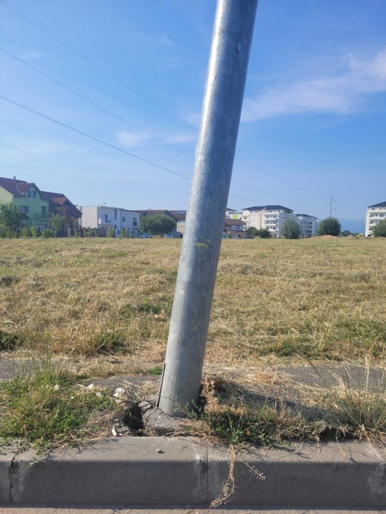 ”Sesizarea primită sâmbătă, 5 iulie prin Sibiu City App cu privire la acest stâlp de pe str. Londra a fost transmisă asocierii Flash Lighting Services SA – Electro Con Impex, contractată de Primăria Sibiu pentru gestionarea sistemului de iluminat public din Municipiu. Situația semnalată a fost deja remediată, stâlpul fiind repus pe poziție, refăcându-se ancorarea”, informează oficialii Primăriei Sibiu.