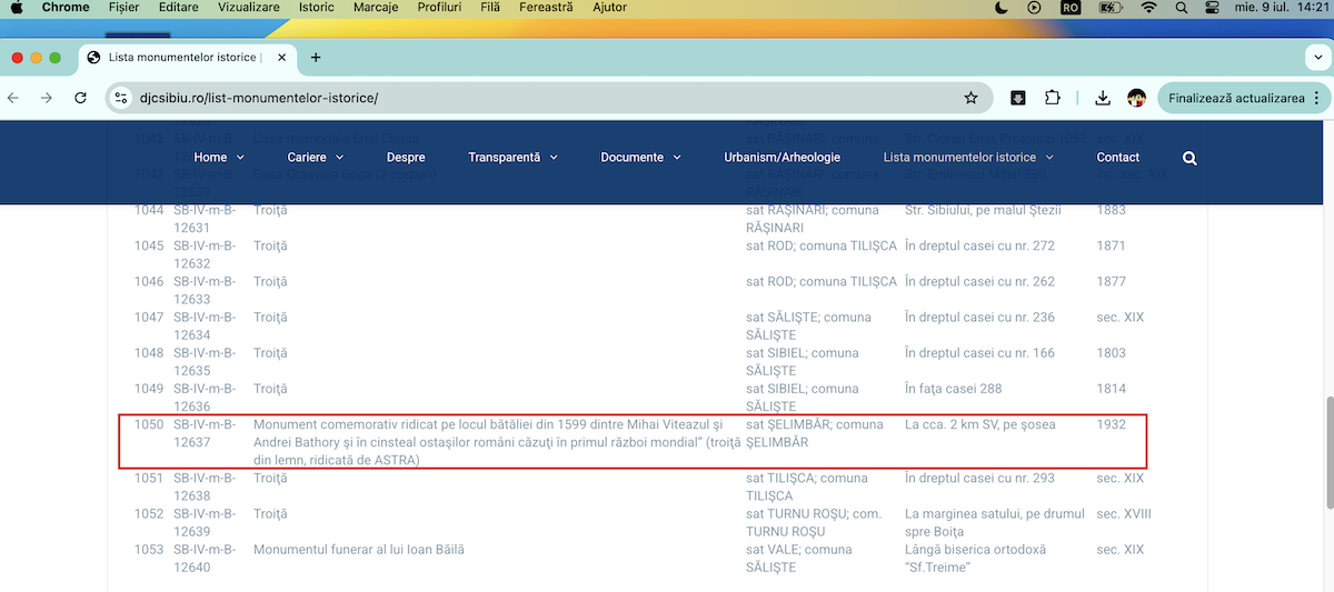 Clarificarea transmisă de DJC Sibiu confirmă existența acestei inadvertențe în listare și arată că instituția a sesizat Institutul Național al Patrimoniului pentru corectarea ei încă din 2020 – un demers salutar, dar care nu este finalizat până la momentul publicării materialului.