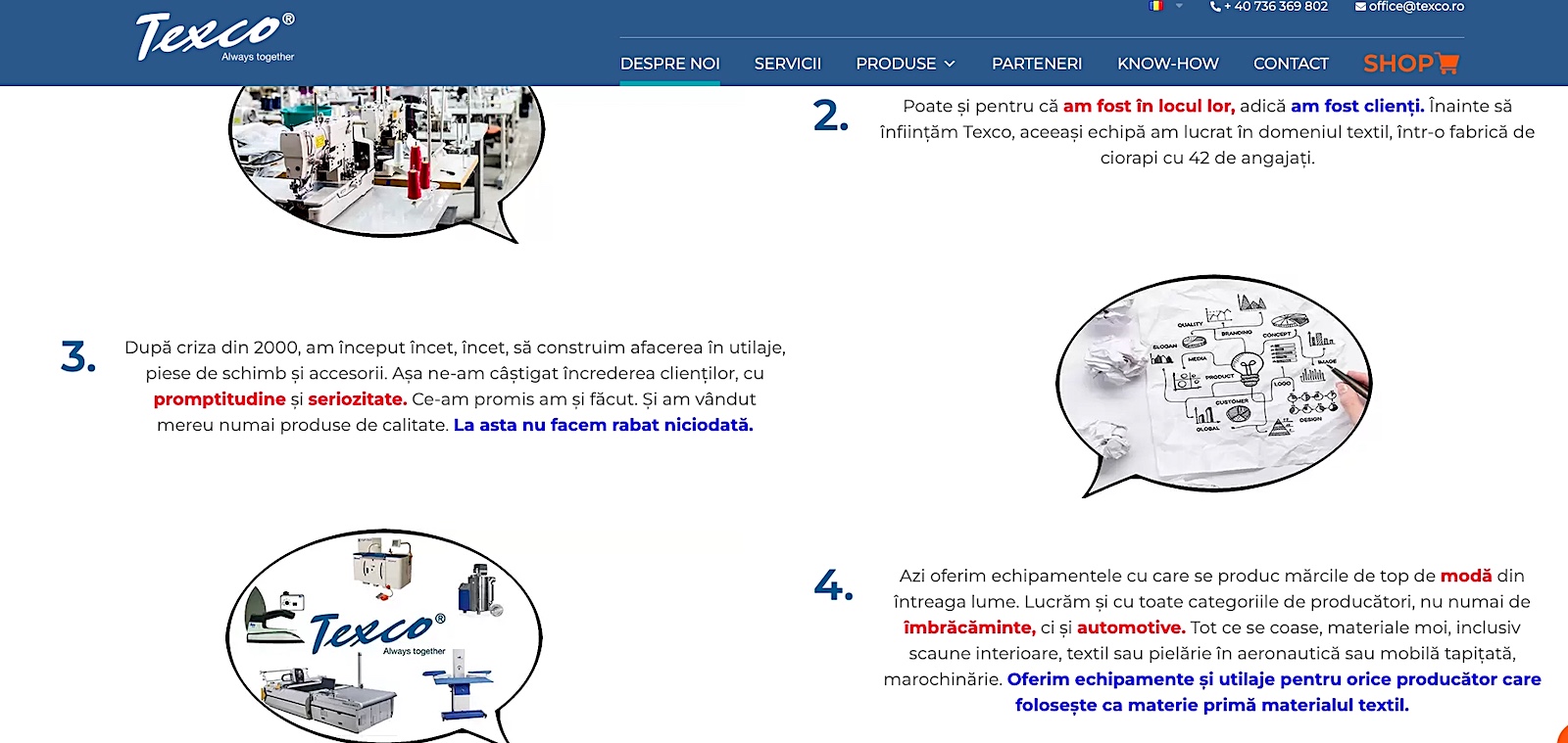 Prezentare a grupului de companii Texco. Sursa foto: captură https://texco.ro/despre-noi/