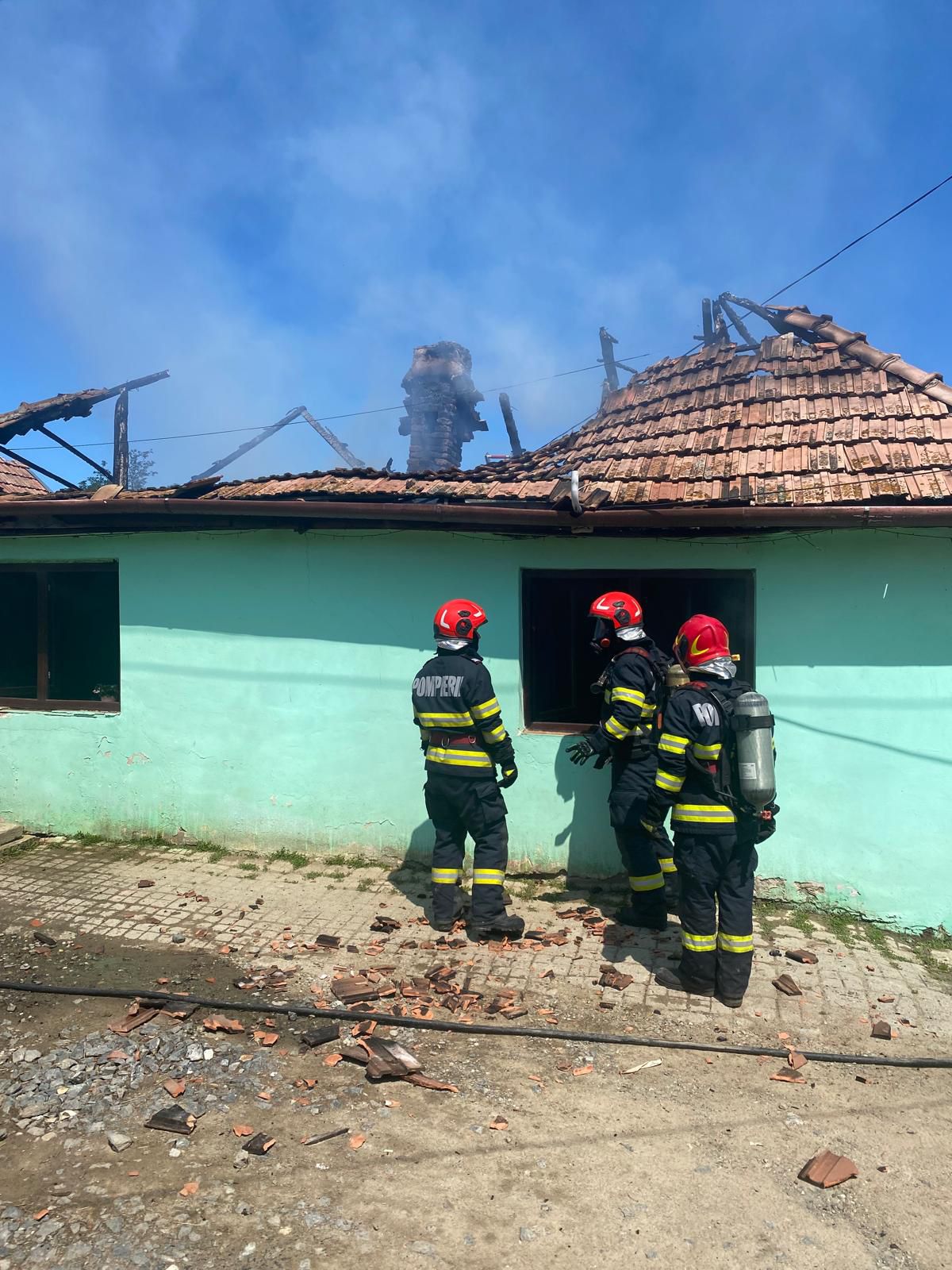 La fața locului s-au deplasat două autospeciale de stingere și un echipaj SMURD, care au acționat prompt pentru localizarea și lichidarea incendiului. În urma evenimentului, acoperișul casei a ars pe o suprafață de aproximativ 60 de metri pătrați, iar bucătăria a fost distrusă, fiind afectat mobilierul și mai multe aparate electrocasnice. Locuința a fost, de asemenea, inundată cu fum.