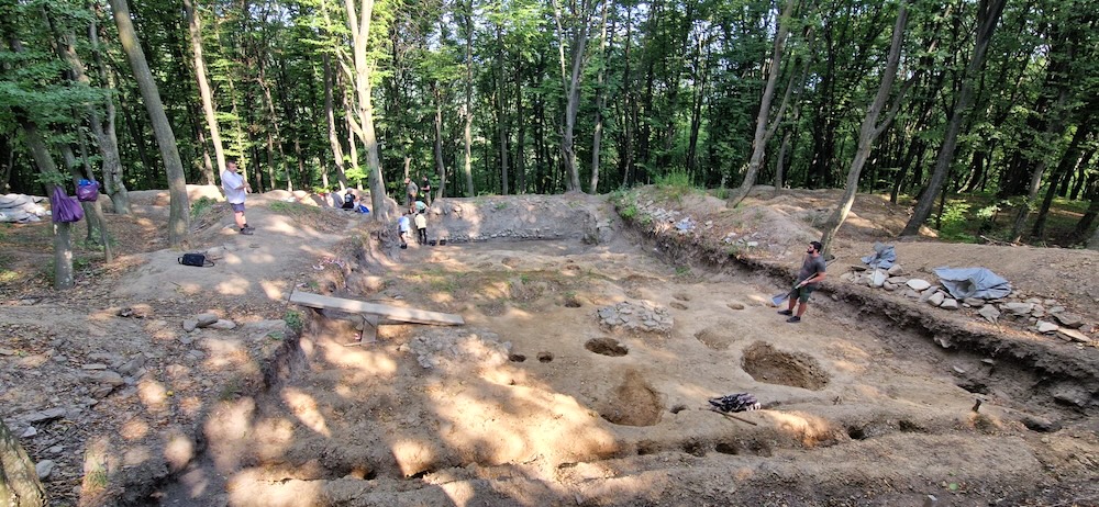 Da, avem un șantier deschis pe o terasă aflată imediat sub platoul superior, dar ea aparținea centrului așezării. În momentul de față cercetăm valul superior de apărare pentru a vedea modul cum a fost construit și pentru a putea fi datat mai exact, în funcție de materialele pe care le găsim în el. Din ce am găsit până acum, se pare că avem un zid sec, construit din piatră de râu și locală, după el este un strat de pământ, iar acum sperăm să găsim și al doilea zid, spre exterior. În momentul de față putem spune doar acest val, sau zid, a fost acoperit cu o manta de piatră. Rămâne de văzut ce o să găsim la baza lui.