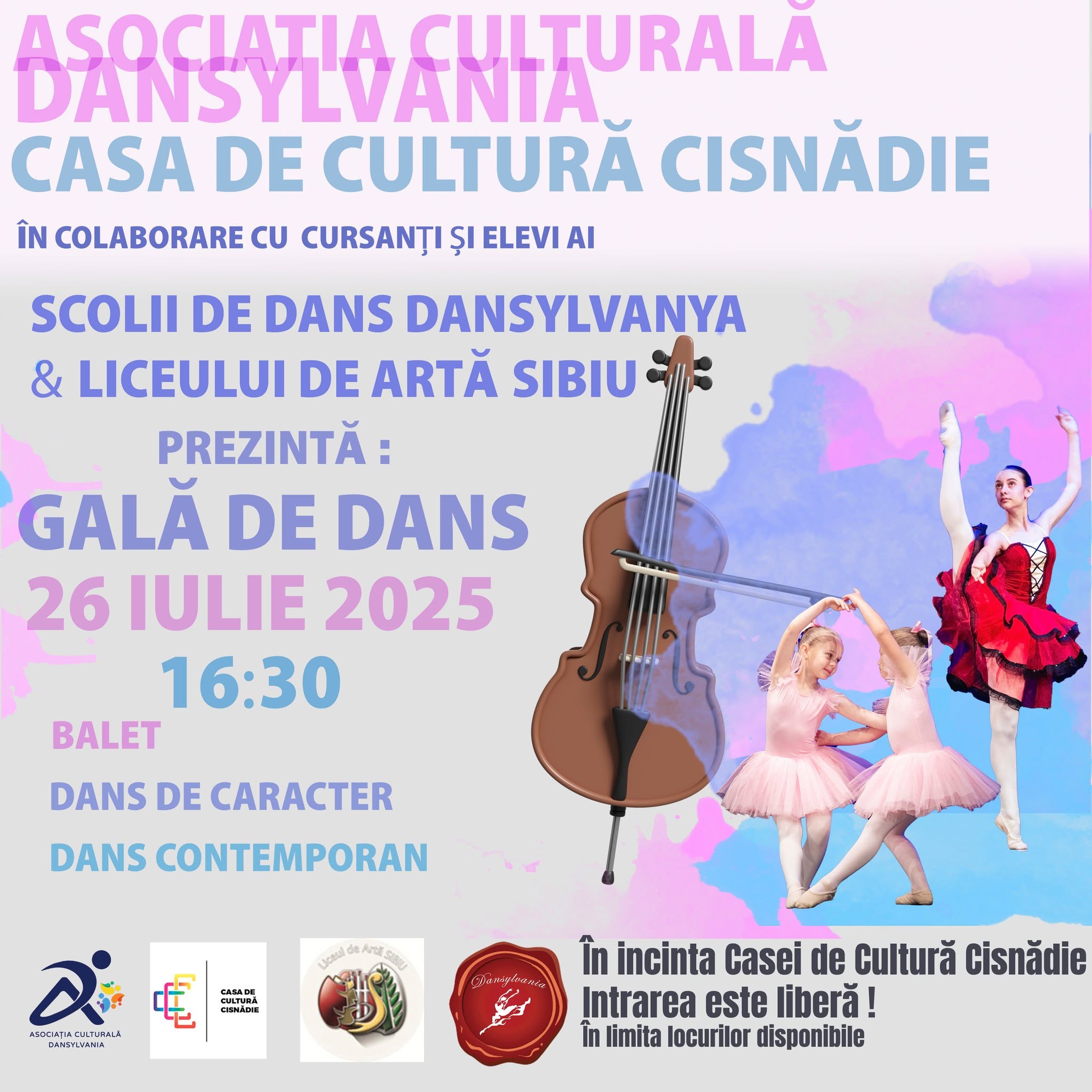O gală de dans care va avea loc sâmbătă, de la ora 16:30, la Casa de Cultură Cisnădie.