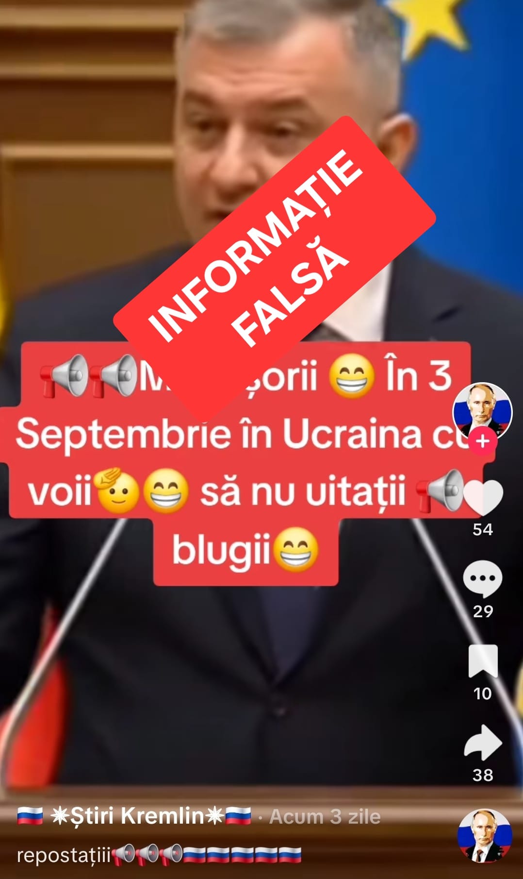 ''Aceste clipuri sunt false și fac parte dintr-o acțiune de manipulare intenționată a opiniei publice. Prim-ministrul României nu a susținut astfel de declarații, iar România nu intră în război'', a informat, marți, Biroul de presă al MAI.
