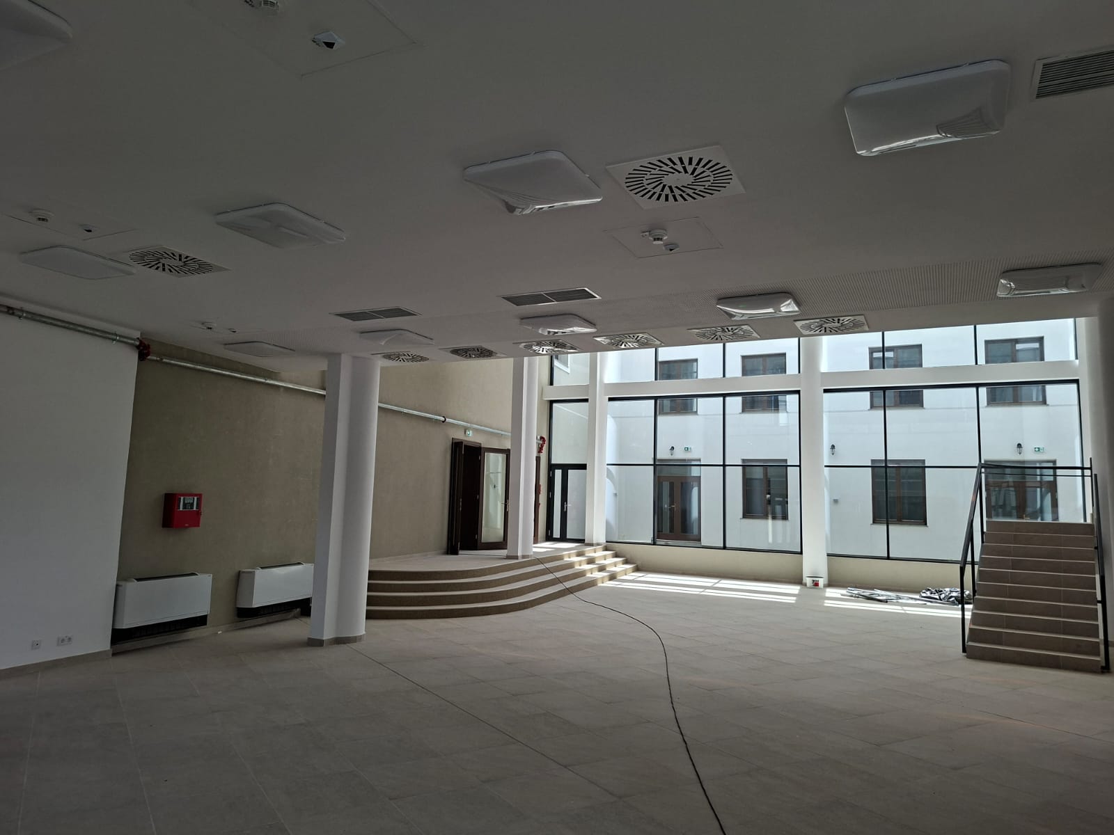 „Suntem într-un stadiu foarte avansat, 98 % din lucrări sunt gata. Mai avem de montat scaunele în sală, de făcut probe la instalațiile de aer condiționat și încălzire, precum și mici amenajări exterioare în curte”, a declarat primarul.
