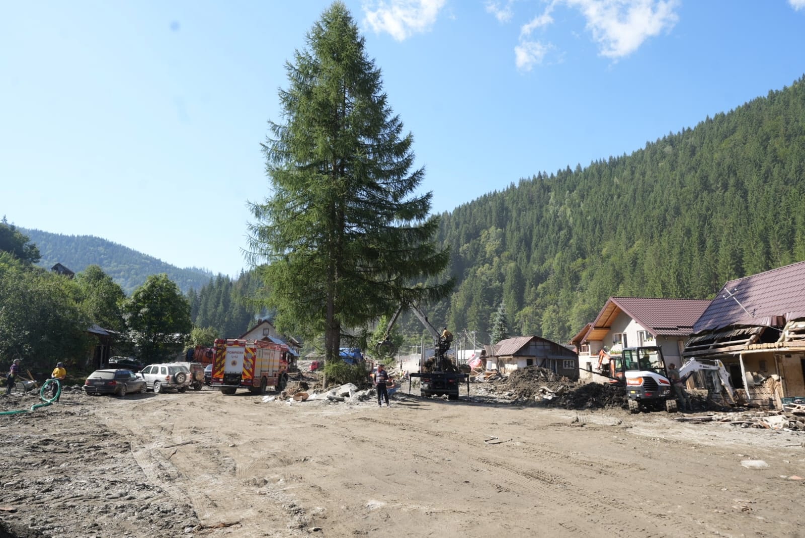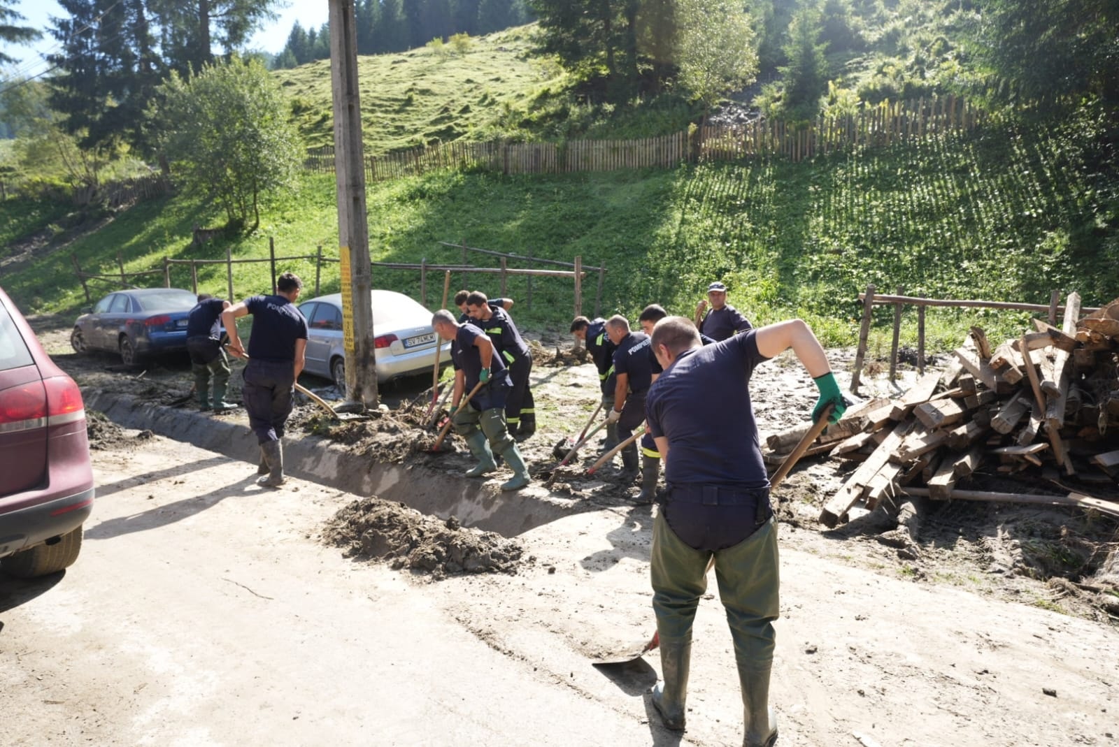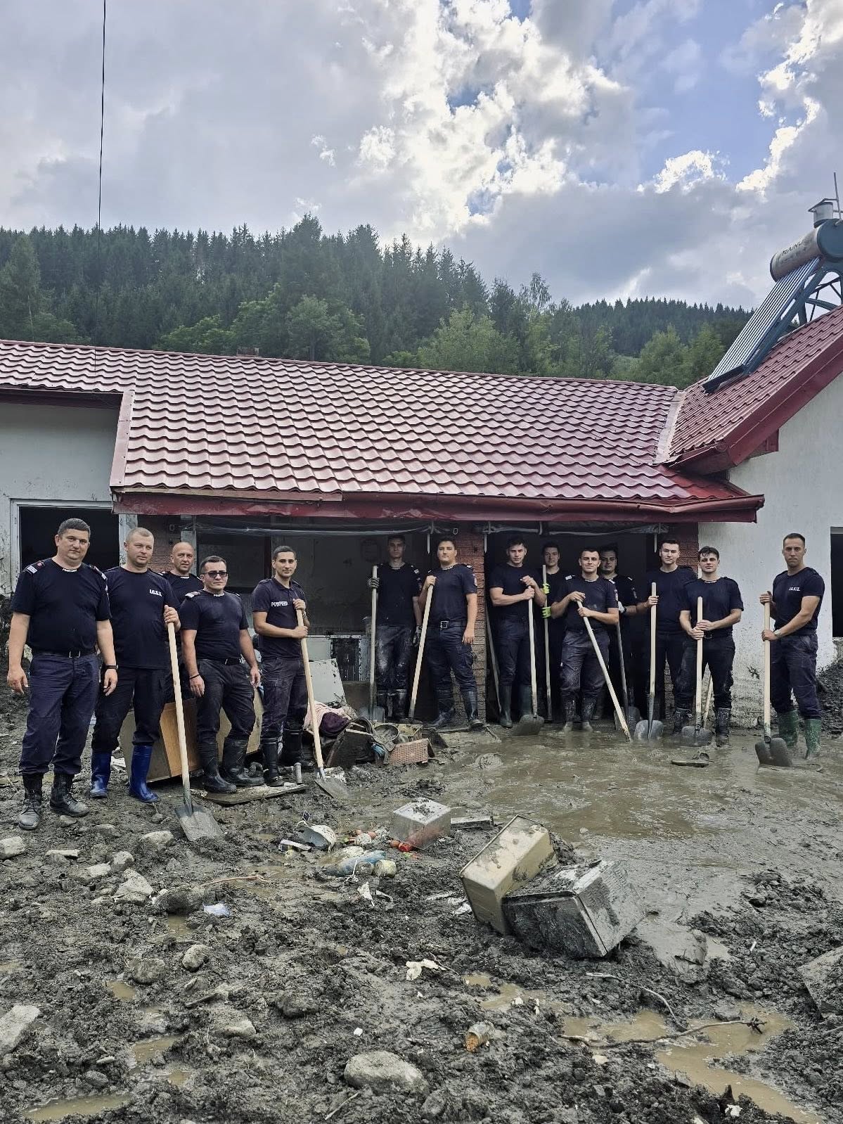 „În această dimineață, 15 pompieri sibieni au pornit spre localitatea Broșteni, județul Suceava, pentru a fi alături de colegii lor din țară în lupta cu efectele devastatoare ale fenomenelor hidrometeorologice care au lovit zeci de familii. Fără ezitare, odată ajunși la destinație, s-au pus imediat pe treabă. Pentru că fiecare clipă contează atunci când suferința oamenilor cere intervenție rapidă, hotărâtă și curajoasă,” spun cei de la ISU Sibiu.