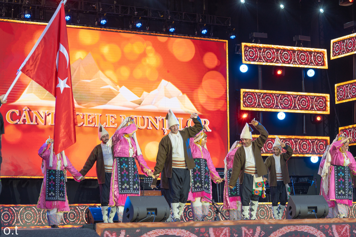 Prima parte a spectacolului de sâmbătă a adus pe scena din Piața Mare ansambluri invitate din țară, dar și de peste hotare, care au impresionat prin ritmuri, muzică și costume. Apoi, Școala de Dans „Ioan Macrea” și Ansamblul Folcloric „Ceata Junilor” au oferit publicului iubitor de frumos spectacolul „Copilăria în pași de dans”, parte a proiectului cu același titlu, desfășurat pe parcursul lunilor iunie, iulie și august.