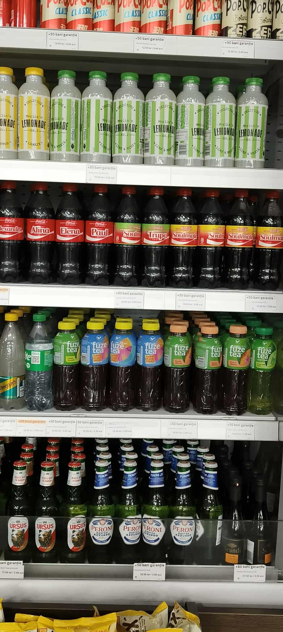 Astfel, dacă lângă Capitală o apă la jumătate de litru costă 16 lei, la Sibiu aceeași apă costă 11 lei. Un suc acidulat, precum Fanta sau Coca-Cola la 0,5 litri costă 16 lei, iar un energizant costă 18 lei la Sibiu.