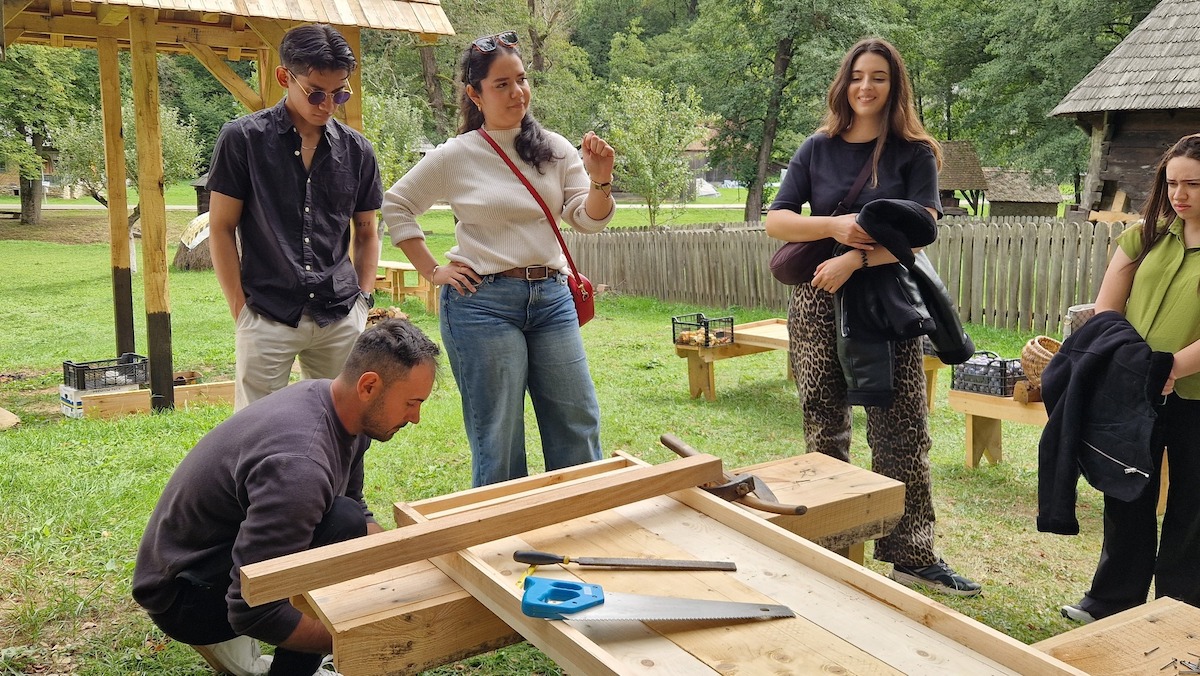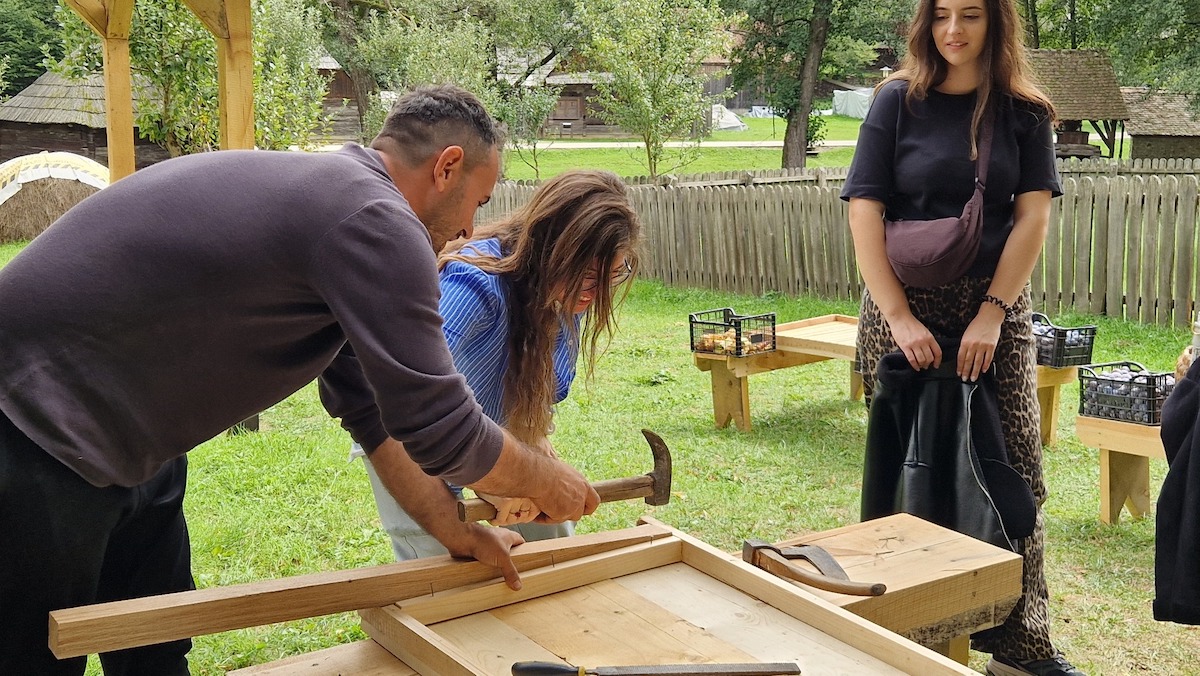 Vizitatorii dau o mână de ajutor meșterului Laurențiu, iar atelierul are loc sâmbătă și duminică, între orele 11 și 17.