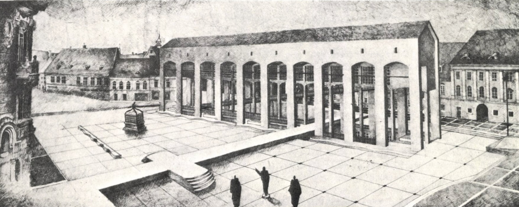 Un alt proiect, premiat cu mențiune, a concluzionat că aici, în centrul Sibiului, e ”prea mult cer”, astfel că a propus construcția unui spațiu între intrarea la Muzeul Brukenthal, până pe cealaltă parte a pieței.