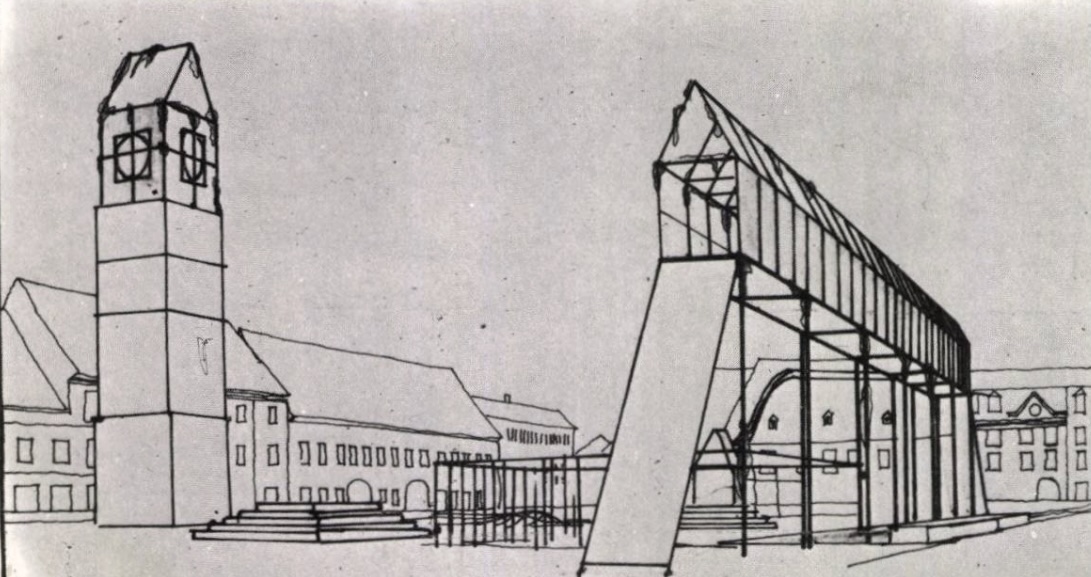 Proiectul care a primit premiul al II-lea propunea construcția unui turn în centrul Pieței Mari.