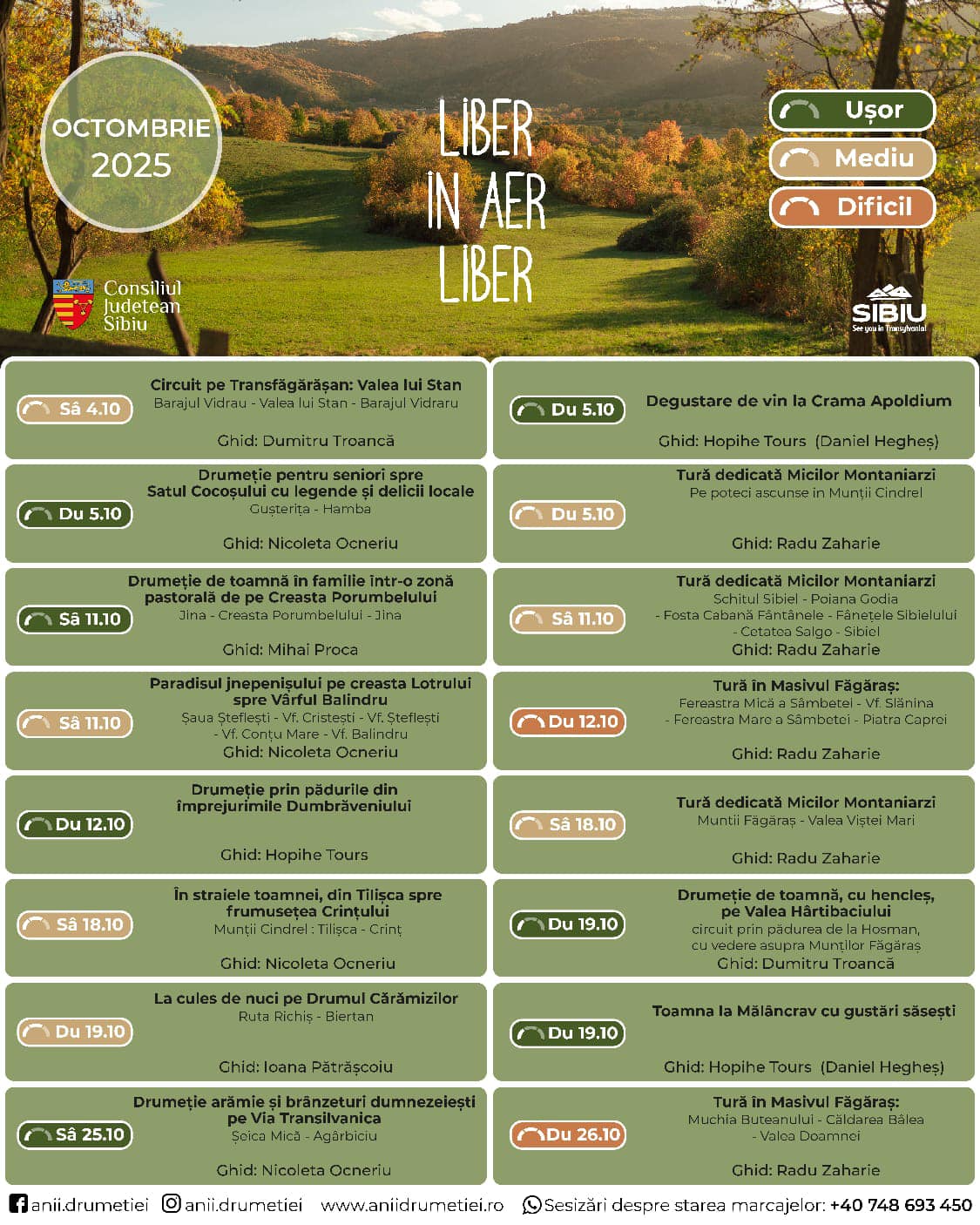 Anii Drumeției a publicat programul drumetiilor pentru luna octombrie.