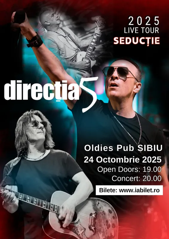 Direcția 5 concertează, în 24 octombrie, la Oldies Pub. Bilete pot fi cumpărate aici.