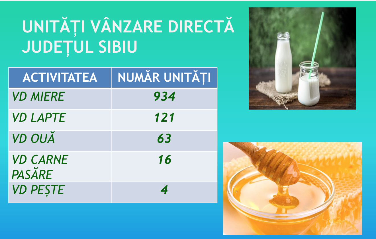 Potrivit datelor DSVSA Sibiu, în județul Sibiu sunt 121 de unități de vânzare directă a laptelui și 13 unități de procesare a laptelui, autorizate de specialiști.
