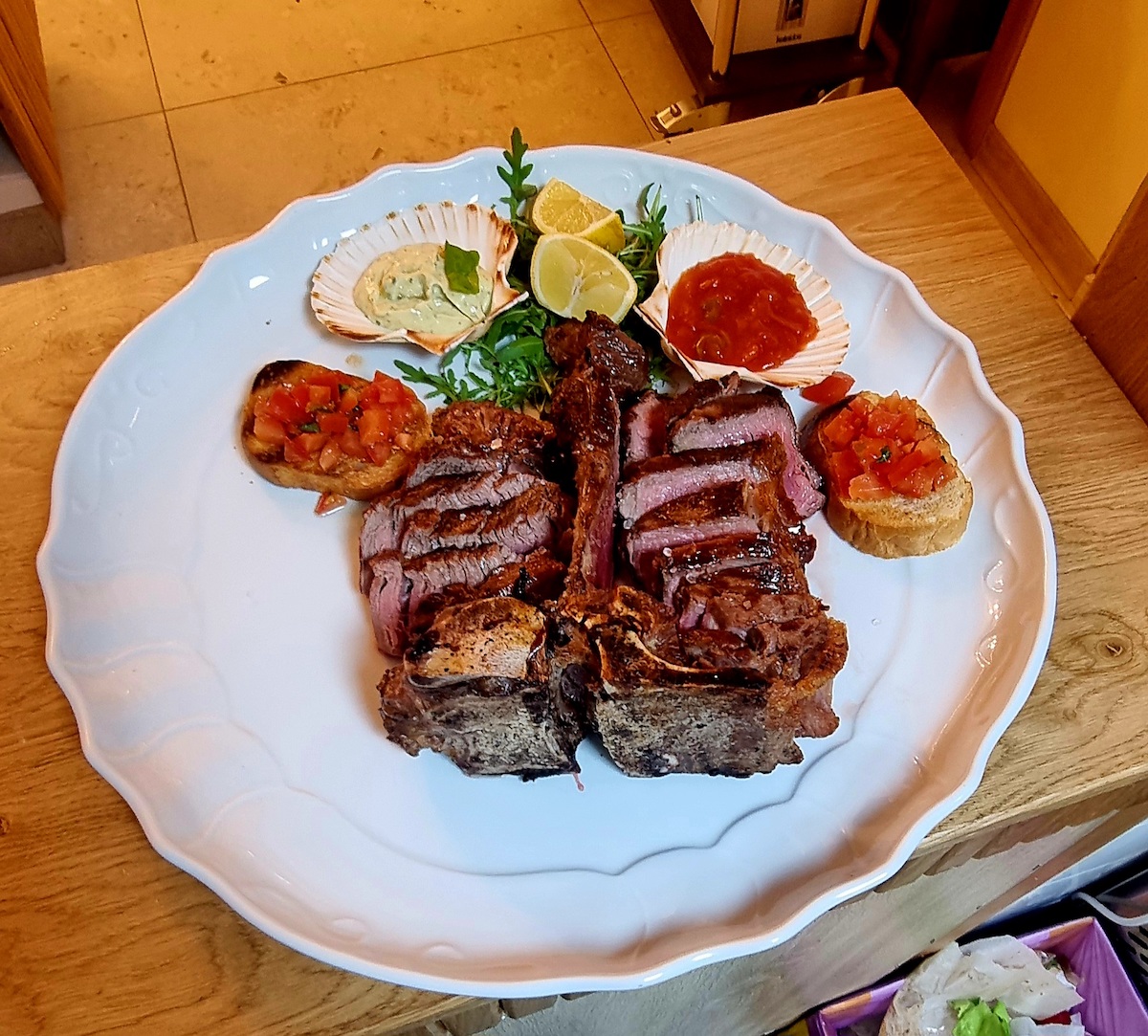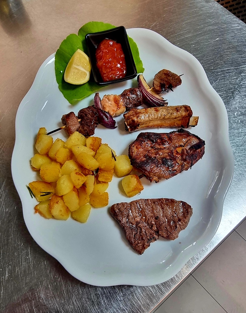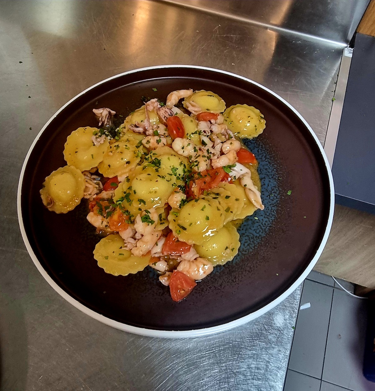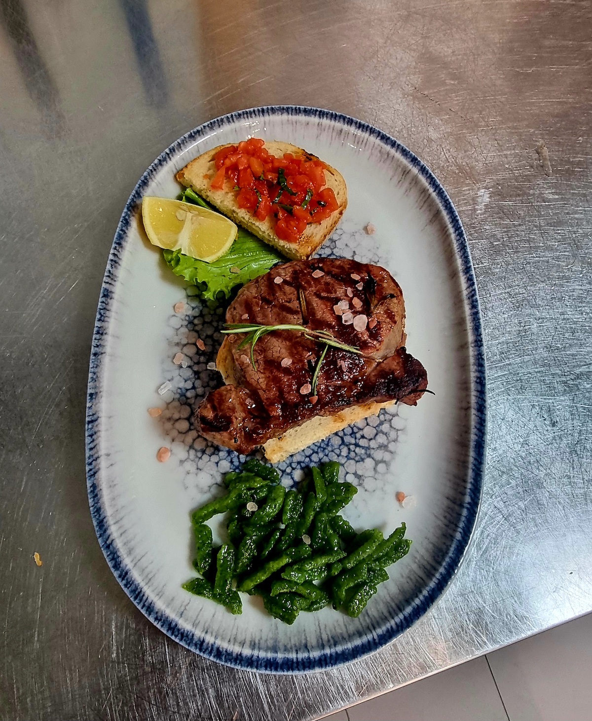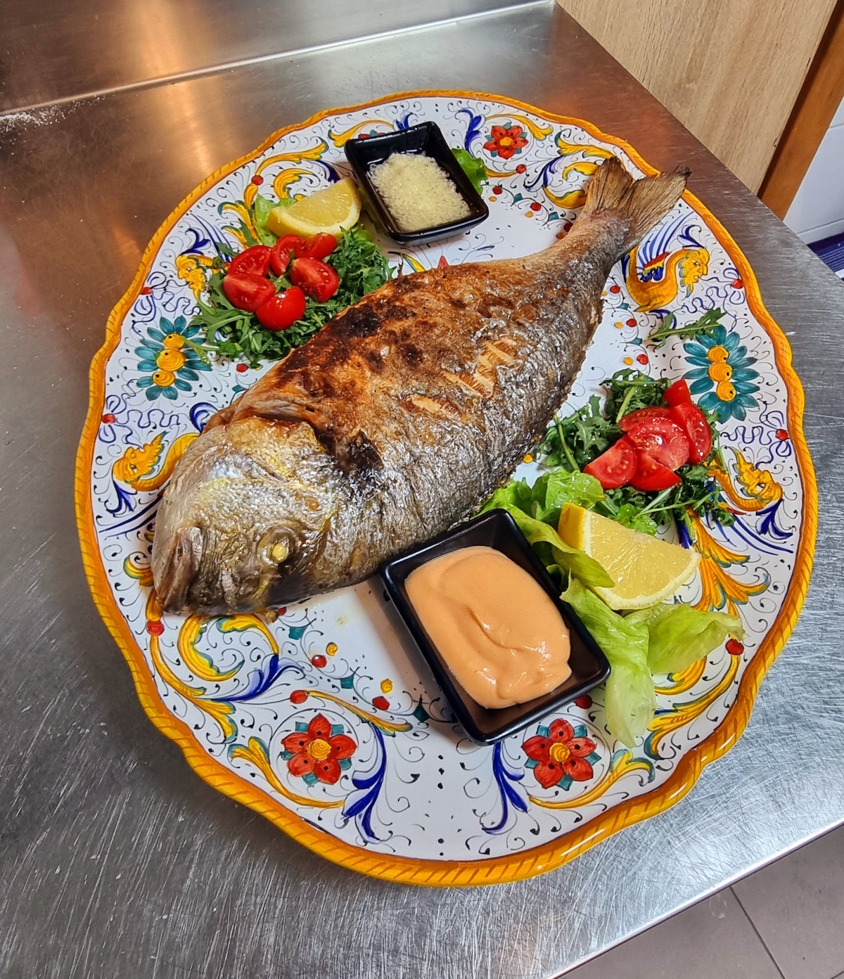 „La capitolul pește, la noi se pot mânca gustări de pește pe care nu le găsești nicăieri, pește crud, când ajunge proaspăt din Italia, pentru că nu-l avem întotdeauna. Avem paste carbonara, paste cu creveți și roșii uscate la soare, sunt foarte solicitate aici pentru că au usturoi și românilor le place. Recomandăm și spaghetti allo scoglio, un preparat de paste cu fructe de mare în care se regăsesc calamari, creveți, midii, care creează un sos armonios. Avem carne de toate felurile, la grătar, la tigaie, mușchi din Australia, din Brazilia, care se poate pregăti în orice fel vrea omul”, detaliază ei.
