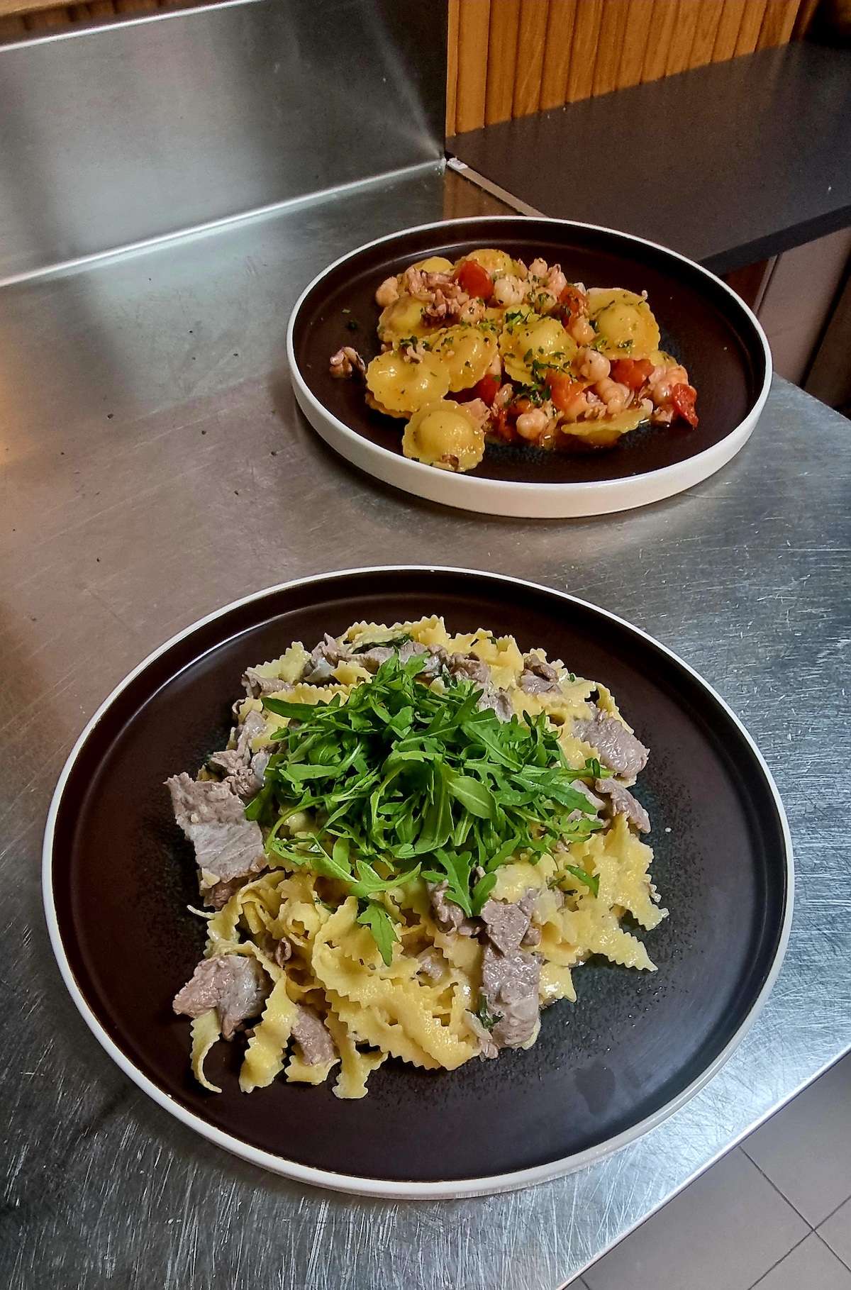 „Pastele sunt cele mai solicitate de clienți. Noi venim de la domeniul pizzeriei, al pastelor pentru că provenim din Emilia-Romagna, o zonă în care tradiția este să faci pastele de la zero, din făină și ouă, exact cum trebuie. Noi aici le facem de la zero, fie că e vorba de tăiței, de tagliatelle, tortellini, umplutura de la tortellini, ravioli, toate sunt făcute de noi direct aici. În România sunt foarte puține locuri în care se întâmplă acest lucru pentru că mulți cumpără și gustul de la marfa cumpărată nu are cum să fie același”, mai spun cei doi bucătari.