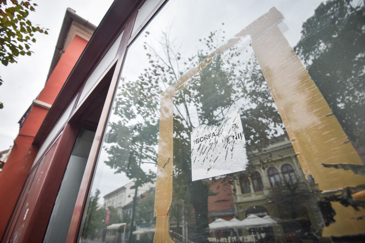 ”Borfașilor, dați bă banii înapoi!” și ”Vreau să cumpăr. Sună-mă” sunt o parte din mesajele care apar aici. Unele dintre se mai văd doar parțial, după ce cineva a încercat să le dezlipească de pe geam.