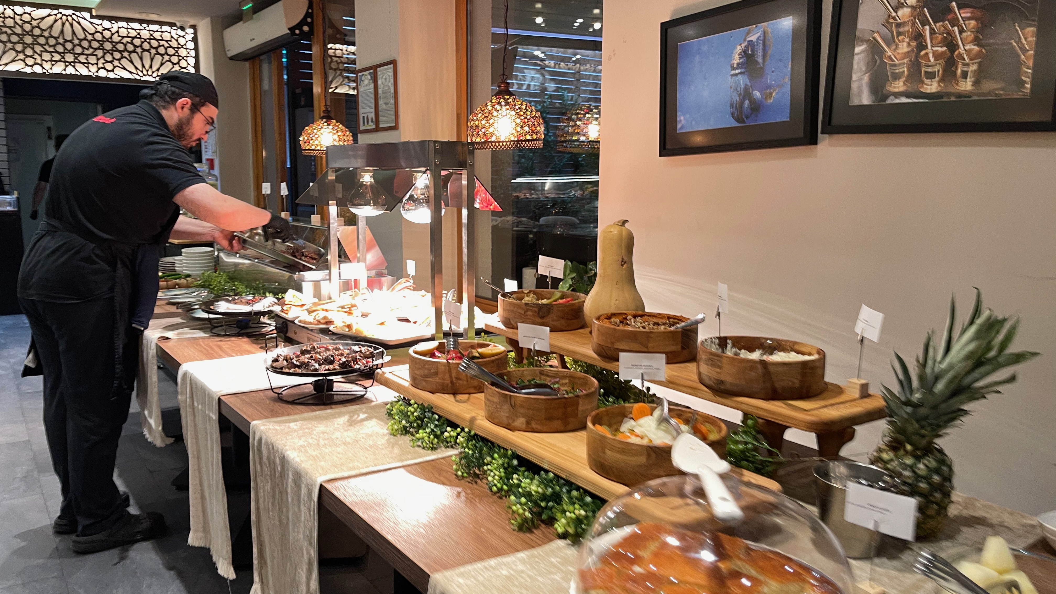 La restaurantul turcesc Konak, de pe strada Turnului, am fost deja de două ori pentru rubrica noastră de cronică de restaurant. Prima dată de curiozitate, a doua oară de poftă, ne-a trebuit un motiv serios ca să le călcăm pragul și pentru a treia oară în scop redacțional. Că, altfel, am mai ciupit câte un prânz sau o cină pe acolo, că mâncarea e tare, tare bună. De data asta am găsit drept motiv noua lor invenție, prânz all you can eat. O dată pe săptămână, marțea, între orele 12 și 14:30, la Konak găsești motiv de sărbătoare. Toate bunătățurile din meniu, întinse ca bufet, pentru doar 54 de lei. Cât un mic dejun în Piața Mare.