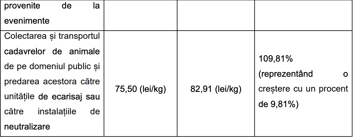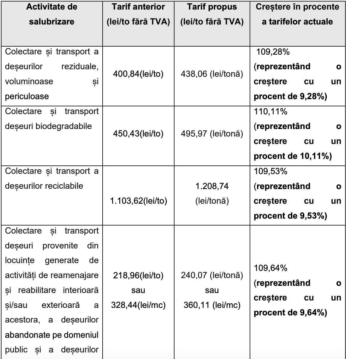 De data aceasta, se propune o majorare a tarifului de 5,3%: de la 158,70 lei/tonă fără TVA la 167,11 lei/tonă fără TVA.