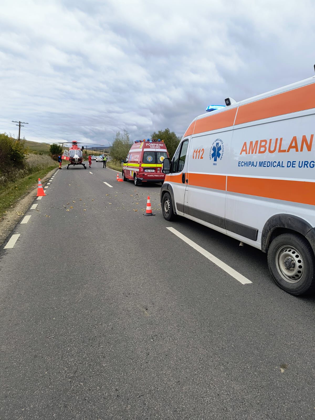 La fața locului intervin două echipaje SMURD – dintre care unul cu medic –, o autospecială de stingere cu modul de descarcerare, precum și un echipaj al Serviciului de Ambulanță Județean Sibiu.
