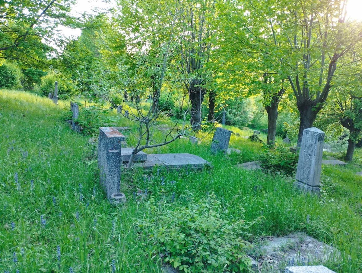După ce am trecut printre mormintele din partea vizibilă a cimitirului, la plecare am observat printre copaci un mormânt. M-am apropiat să îl văd și doar atunci am mai observat alte câteva, apoi am descoperit că e un adevărat cimitir în pădure - care pare mai mare decât ceea ce se vede acum ca fiind partea îngrijită. Iar în unele cazuri - pietrele funerare prezintă adevărate opere de artă.
