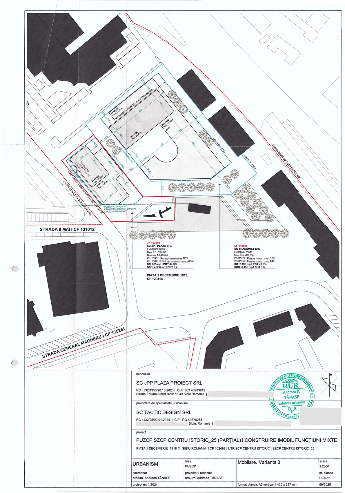 Beneficiarul și, totodată, proprietarul parcelei este firma SC JPP Plaza Proiect SRL, iar documentația a fost elaborată de proiectantul general SC Tactic Design SRL. Este vorba despre documentația Planului Urbanistic pentru Zona Construită Protejată (PUZCP) Centru Istoric_25, propusă pentru consultare publică de către Primăria municipiului Sibiu, ce detaliază demersurile necesare pentru construirea unui imobil cu funcțiuni mixte în apropierea centrului istoric, mai exact în Piața 1 Decembrie 1918.