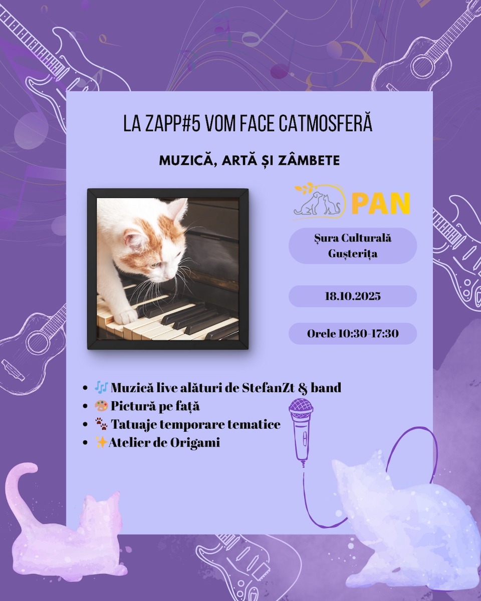 „La ZAPP #5, pisicile te vor ajuta să-ți amintești cât de frumos e să trăiești clipa și să simți gustul dulce al faptelor bune”, concluzionează asociația.